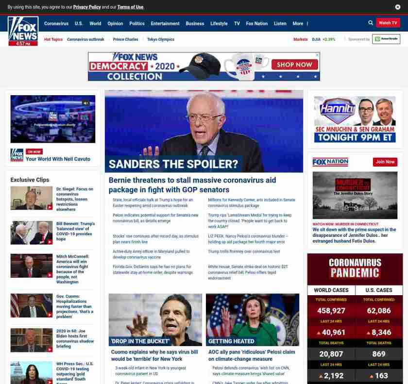 FN: [[SANDERS THE SPOILER?]] Bernie threatens to stall massive coronavirus aid package in fight with GOP senators ((lubuntu at wor3))