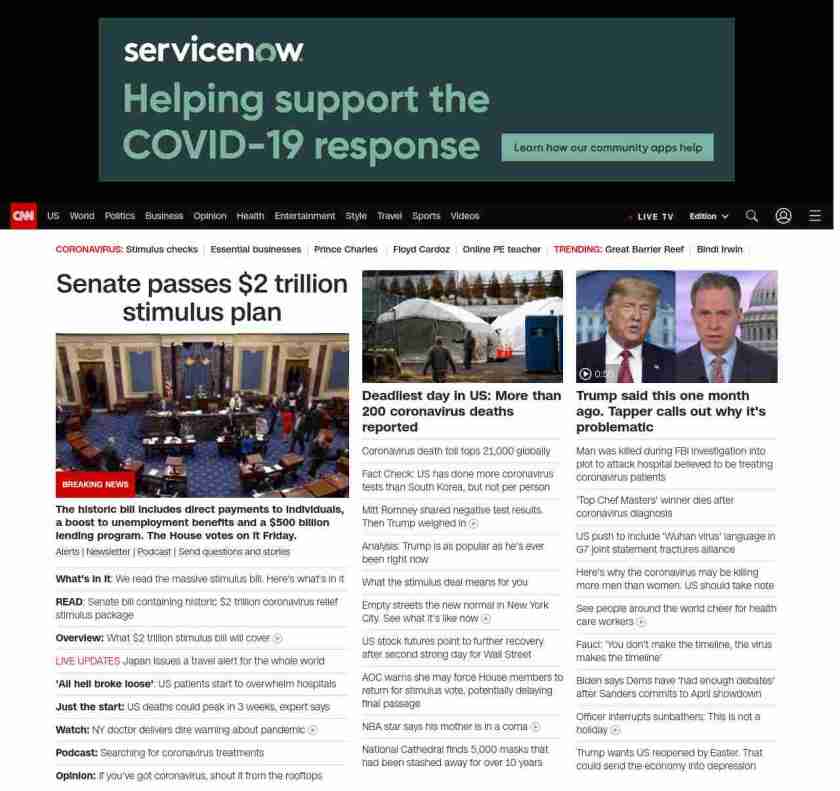 || screaming-banner-text banner-text-size–char-41″ data-analytics=”_list-hierarchical-xs_article_”> Senate passes $2 trillion stimulus plan ||” , title: “CNN – Breaking News, Latest News and Videos” , siblings: {“articleList”:[{“uri”:”/2020/03/25/politics/stimulus-senate-action-coronavirus/index.html”,”headline”:”u003cstrong>The historic bill includes direct payments to individuals, a boost to unemployment benefits and a $500 billion lending program. The House votes on it Friday.u003c/strong>”,”thumbnail”:”//cdn.cnn.com/cnnnext/dam/assets/200325233324-senate-floor-0325-small-11.jpg”,”duration”:””,”description”:”u003ca href=”https://www.cnn.com/specials/mobile-apps” target=”_blank”>Alertsu003c/a> | u003ca href=”https://www.cnn.com/specials/coronavirus-newsletter?utm_source=hp&source=hp” target=”_blank”>Newsletteru003c/a> | u003ca href=”https://www.cnn.com/audio/podcasts/corona-virus”>Podcastu003c/a> | u003ca href=”http://www.cnn.com/2020/03/20/us/coronavirus-healthcare-worker-callout/index.html” target=”_blank”>Send questions and storiesu003c/a>”,”layout”:””