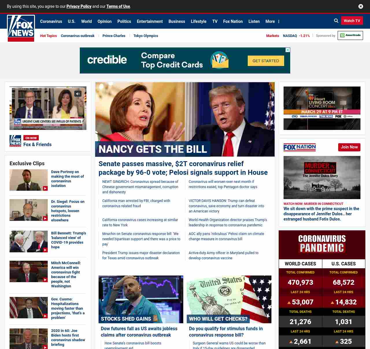 =”https://www.foxnews.com/politics/final-vote-coronavirus-stimulus-bill-now-imminent-amid-tensions-over-provisions“>Senate passes massive, $2T coronavirus relief package by 96-0 vote; Pelosi signals support in House
