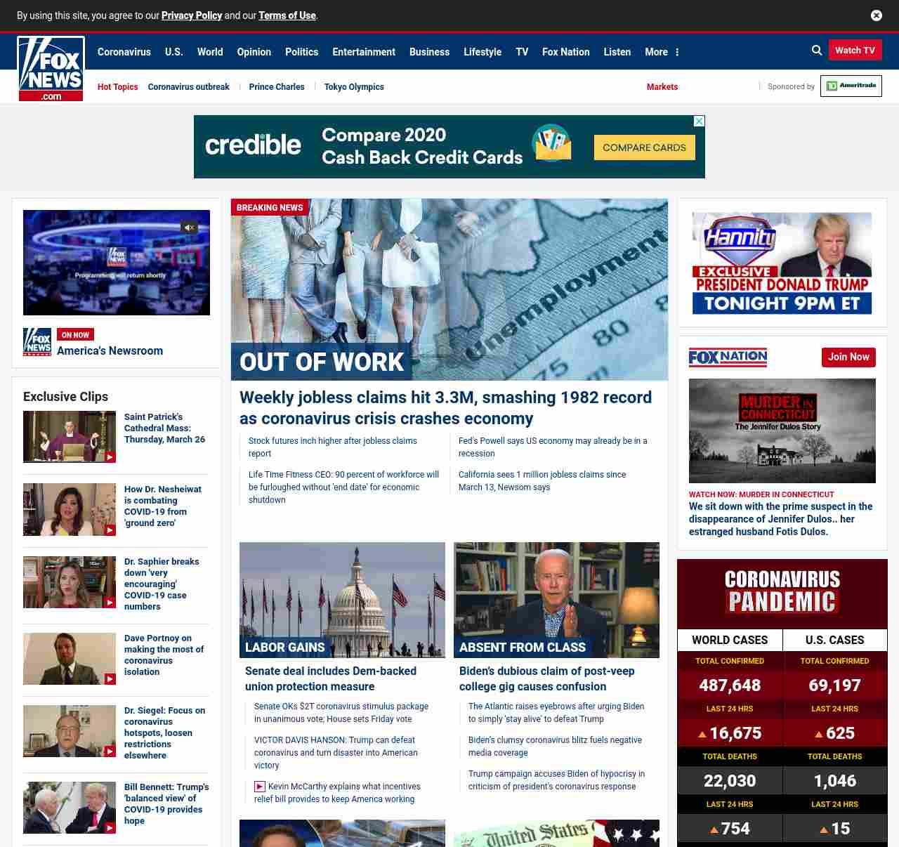 =”https://www.foxbusiness.com/economy/us-unemployment-claims-shatter-record-as-coronavirus-hammers-economy“>Weekly jobless claims hit 3.3M, smashing 1982 record as coronavirus crisis crashes economy