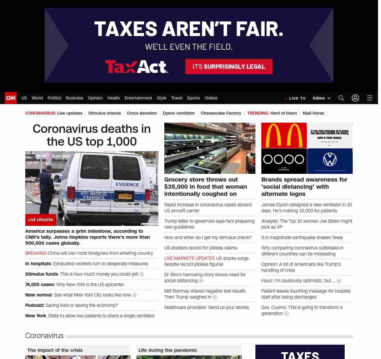 CNN3: “:”u003cstrong>America surpasses a grim milestone, according to CNN’s tally. Johns Hopkins reports there are more than 500, 000 cases globally.u003c/strong>”, “BANNER=|pagerendered| ((lubuntu at wor3))