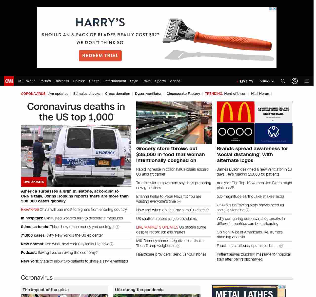 || screaming-banner-text banner-text-size–char-41″ data-analytics=”_list-hierarchical-xs_article_”> Coronavirus deaths in the US top 1,000 ||” , title: “CNN – Breaking News, Latest News and Videos” , siblings: {“articleList”:[{“uri”:”/world/live-news/coronavirus-outbreak-03-26-20-intl-hnk/index.html”,”headline”:”u003cstrong>America surpasses a grim milestone, according to CNN’s tally. Johns Hopkins reports there’s more than 500,000 cases globally.u003c/strong>”,”thumbnail”:”//cdn.cnn.com/cnnnext/dam/assets/200326120556-nyc-makeshift-morgue-small-11.jpg”,”duration”:””,”description”:””,”layout”:””
