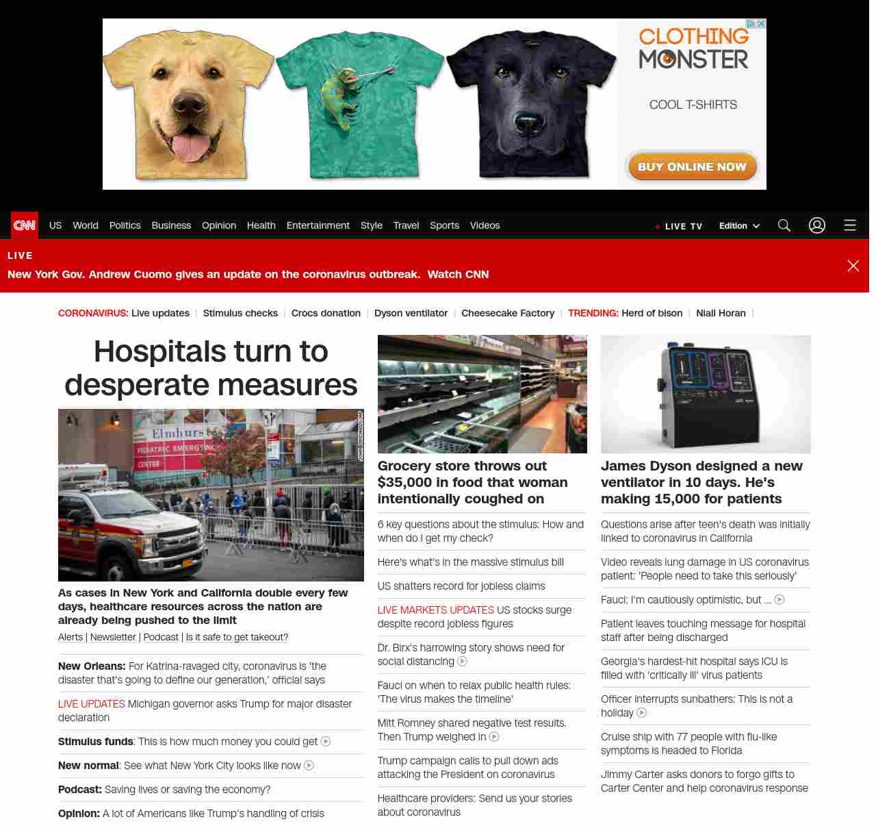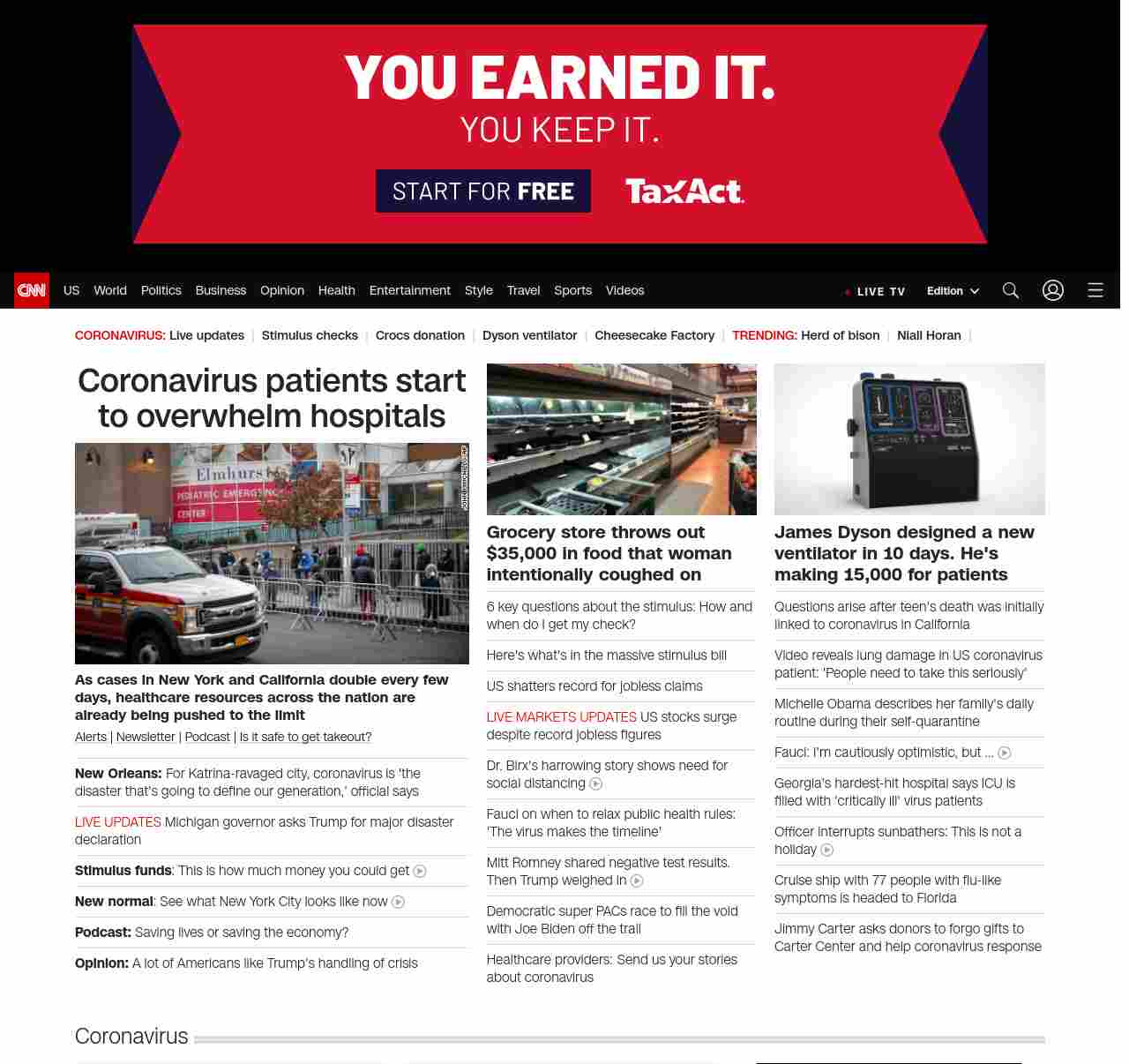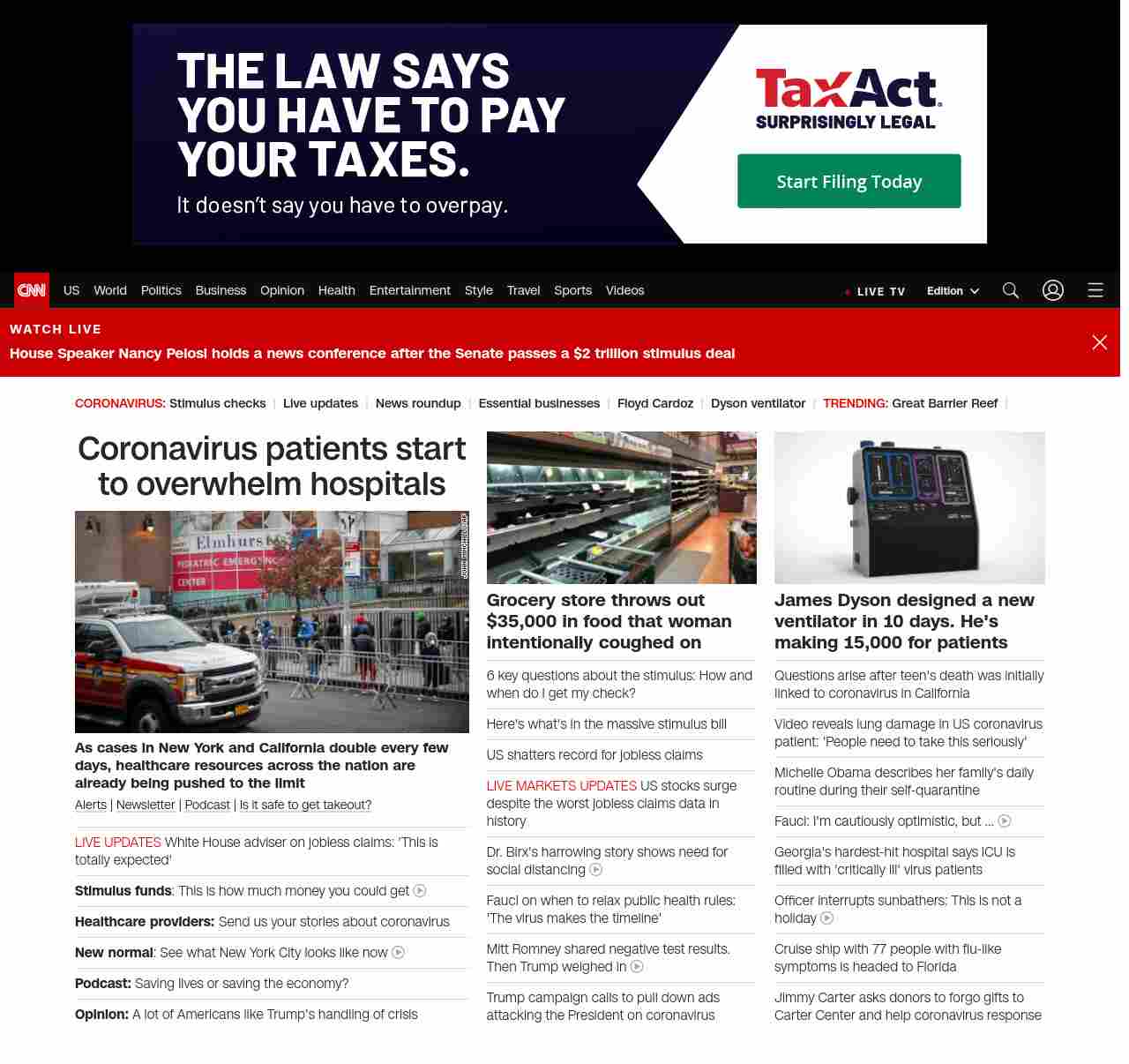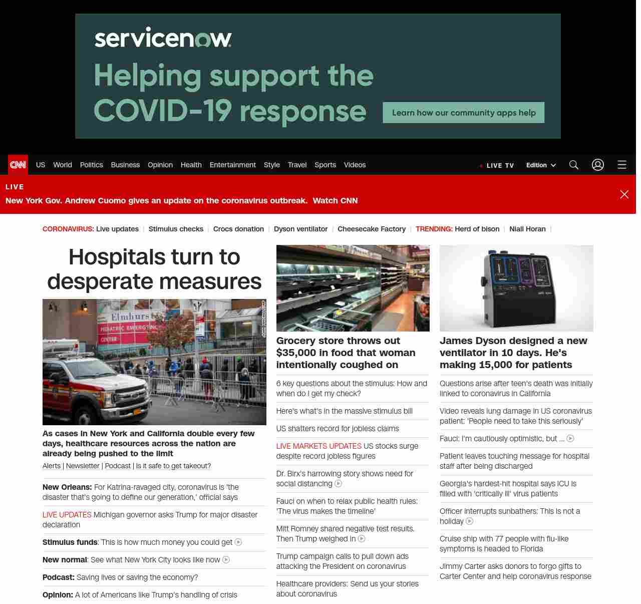|| screaming-banner-text banner-text-size–char-47″ data-analytics=”_list-hierarchical-xs_hyperlink_”> Coronavirus patients start to overwhelm hospitals ||” , title: “CNN – Breaking News, Latest News and Videos” , siblings: {“articleList”:[{“uri”:”/world/live-news/coronavirus-outbreak-03-26-20-intl-hnk/index.html”,”headline”:”White House adviser on jobless claims: ‘This is totally expected'”,”thumbnail”:”//cdn.cnn.com/cnnnext/dam/assets/200325201859-01-coronavirus-0325-illinois-small-11.jpg”,”duration”:””,”description”:””,”layout”:””