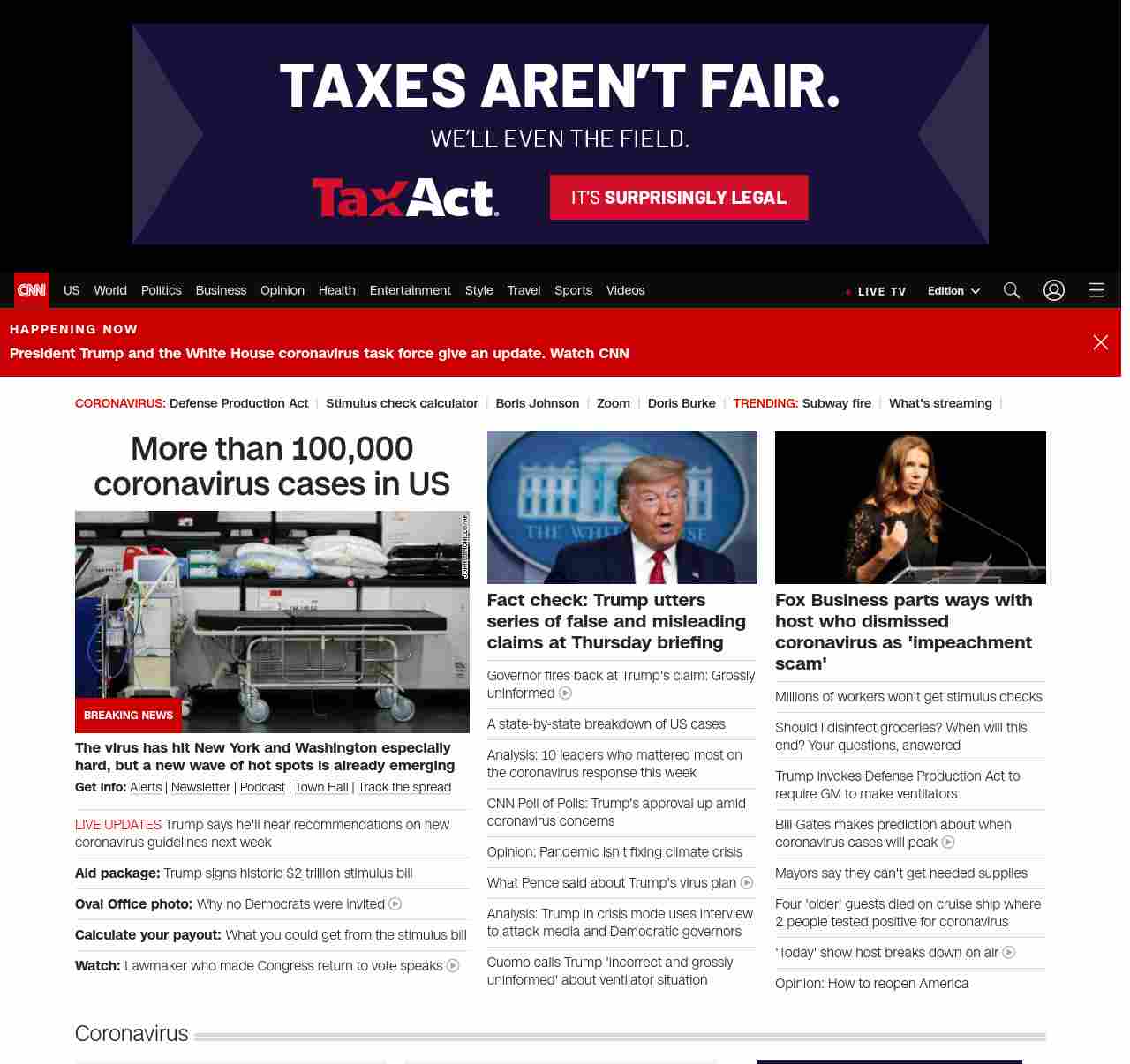|| screaming-banner-text banner-text-size–char-44″ data-analytics=”_list-hierarchical-xs_article_”> More than 100,000 coronavirus cases in US ||” , title: “CNN – Breaking News, Latest News and Videos” , siblings: {“articleList”:[{“uri”:”/2020/03/27/health/us-coronavirus-friday/index.html”,”headline”:”u003cstrong>The virus has hit New York and Washington especially hard, but a new wave of hot spots is already emergingu003c/strong>”,”thumbnail”:”//cdn.cnn.com/cnnnext/dam/assets/200327095946-01-medical-equipment-ventilator-new-york-javits-center-0323-small-11.jpg”,”duration”:””,”description”:”u003cstrong>Get info:u003c/strong> u003ca href=”https://www.cnn.com/specials/mobile-apps” target=”_blank”>Alertsu003c/a> | u003ca href=”https://www.cnn.com/specials/coronavirus-newsletter?utm_source=hp&source=hp” target=”_blank”>Newsletteru003c/a> | u003ca href=”https://www.cnn.com/audio/podcasts/corona-virus”>Podcastu003c/a> | u003ca href=”http://www.cnn.com/2020/03/26/app-news-section/full-coronavirus-town-hall-march-26-2020-app/index.html” target=”_blank”>Town Hallu003c/a> | u003ca href=”https://www.cnn.com/interactive/2020/health/coronavirus-maps-and-cases/” target=”_blank”>Track the spreadu003c/a>”,”layout”:””