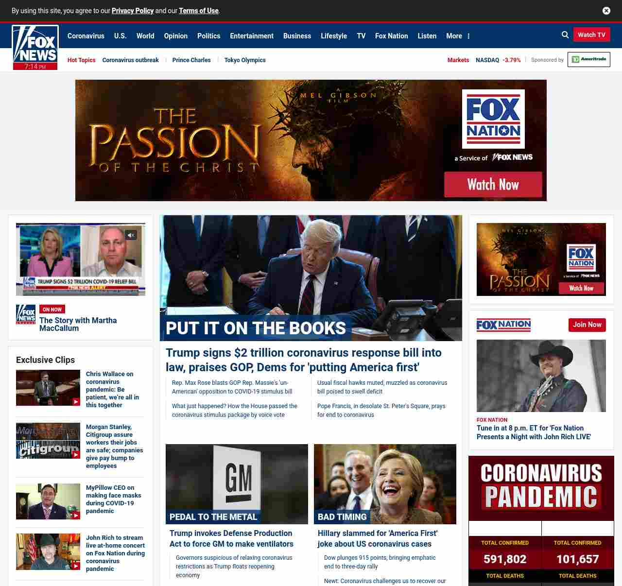 FN: [[PUT IT ON THE BOOKS]] Trump signs $2 trillion coronavirus response bill into law, praises GOP, Dems for ' putting America first' ((lubuntu at wor3))