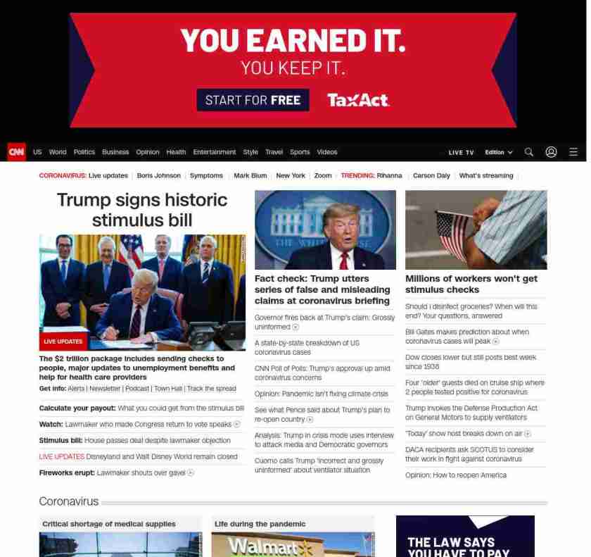 CNN1: FOXVCNN=|Trump signs historic stimulus bill| ((lubuntu at wor3)) || screaming-banner-text banner-text-size–char-35″ data-analytics=”_list-hierarchical-xs_hyperlink_”> Trump signs historic stimulus bill ||Trump signs historic stimulus bill Share this: Share on X (Opens in new window) X Share on Facebook (Opens in new window) Facebook Like Loading... Related