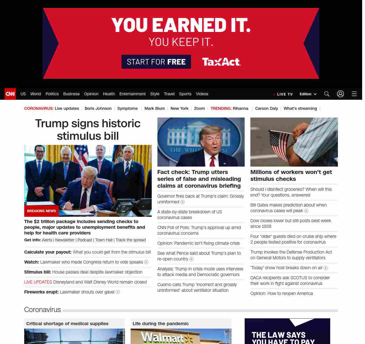 || screaming-banner-text banner-text-size–char-35″ data-analytics=”_list-hierarchical-xs_hyperlink_”> Trump signs historic stimulus bill ||” , title: “CNN – Breaking News, Latest News and Videos” , siblings: {“articleList”:[{“uri”:”/2020/03/27/politics/stimulus-check-calculator/index.html”,”headline”:”u003cstrong>Calculate your payout: u003c/strong>What you could get from the stimulus bill”,”thumbnail”:”//cdn.cnn.com/cnnnext/dam/assets/200327151248-us-dollar-0319-small-11.jpg”,”duration”:””,”description”:”Congress just passed a u003ca href=”http://www.cnn.com/2020/03/27/politics/coronavirus-stimulus-house-vote/index.html” target=”_blank”>$2 trillion stimulus billu003c/a> to address the growing economic crisis caused by the coronavirus pandemic.”,”layout”:””