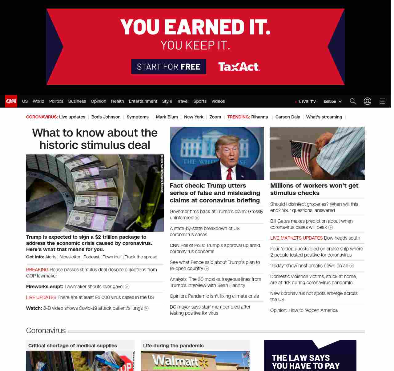 || screaming-banner-text banner-text-size–char-47″ data-analytics=”_list-hierarchical-xs_article_”> What to know about the historic stimulus deal ||” , title: “CNN – Breaking News, Latest News and Videos” , siblings: {“articleList”:[{“uri”:”/2020/03/27/politics/stimulus-payments/index.html”,”headline”:”u003cstrong>Trump is expected to sign a $2 trillion package to address the economic crisis caused by coronavirus. Here’s what that means for you. u003c/strong>”,”thumbnail”:”//cdn.cnn.com/cnnnext/dam/assets/200320105653-us-money-printing-file-small-11.jpg”,”duration”:””,”description”:”u003cstrong>Get info:u003c/strong> u003ca href=”https://www.cnn.com/specials/mobile-apps” target=”_blank”>Alertsu003c/a> | u003ca href=”https://www.cnn.com/specials/coronavirus-newsletter?utm_source=hp&source=hp” target=”_blank”>Newsletteru003c/a> | u003ca href=”https://www.cnn.com/audio/podcasts/corona-virus”>Podcastu003c/a> | u003ca href=”http://www.cnn.com/2020/03/26/app-news-section/full-coronavirus-town-hall-march-26-2020-app/index.html” target=”_blank”>Town Hallu003c/a> | u003ca href=”https://www.cnn.com/interactive/2020/health/coronavirus-maps-and-cases/” target=”_blank”>Track the spreadu003c/a>”,”layout”:””