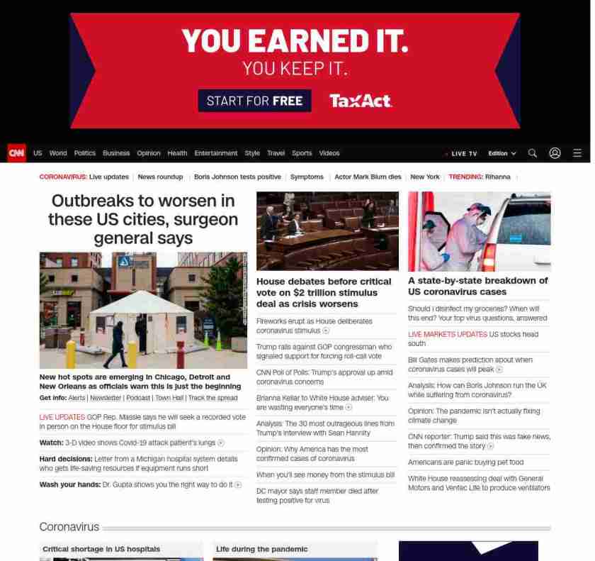 || screaming-banner-text banner-text-size–char-47″ data-analytics=”_list-hierarchical-xs_hyperlink_”> Outbreaks to worsen in these US cities, surgeon general says ||” , title: “CNN – Breaking News, Latest News and Videos” , siblings: {“articleList”:[{“uri”:”/videos/us/2020/03/26/3d-video-shows-covid-19-attack-lungs.cnn”,”headline”:”u003cstrong>Watch:u003c/strong> 3-D video shows Covid-19 attack patient’s lungs”,”thumbnail”:”//cdn.cnn.com/cnnnext/dam/assets/200325000535-covid-19-lung-damage-video-small-11.jpg”,”duration”:”01:16″,”description”:”CT imaging from George Washington University Hospital shows the effects of Covid-19 on the lungs of a 59-year old man.”,”layout”:””,”iconType”:”video”
