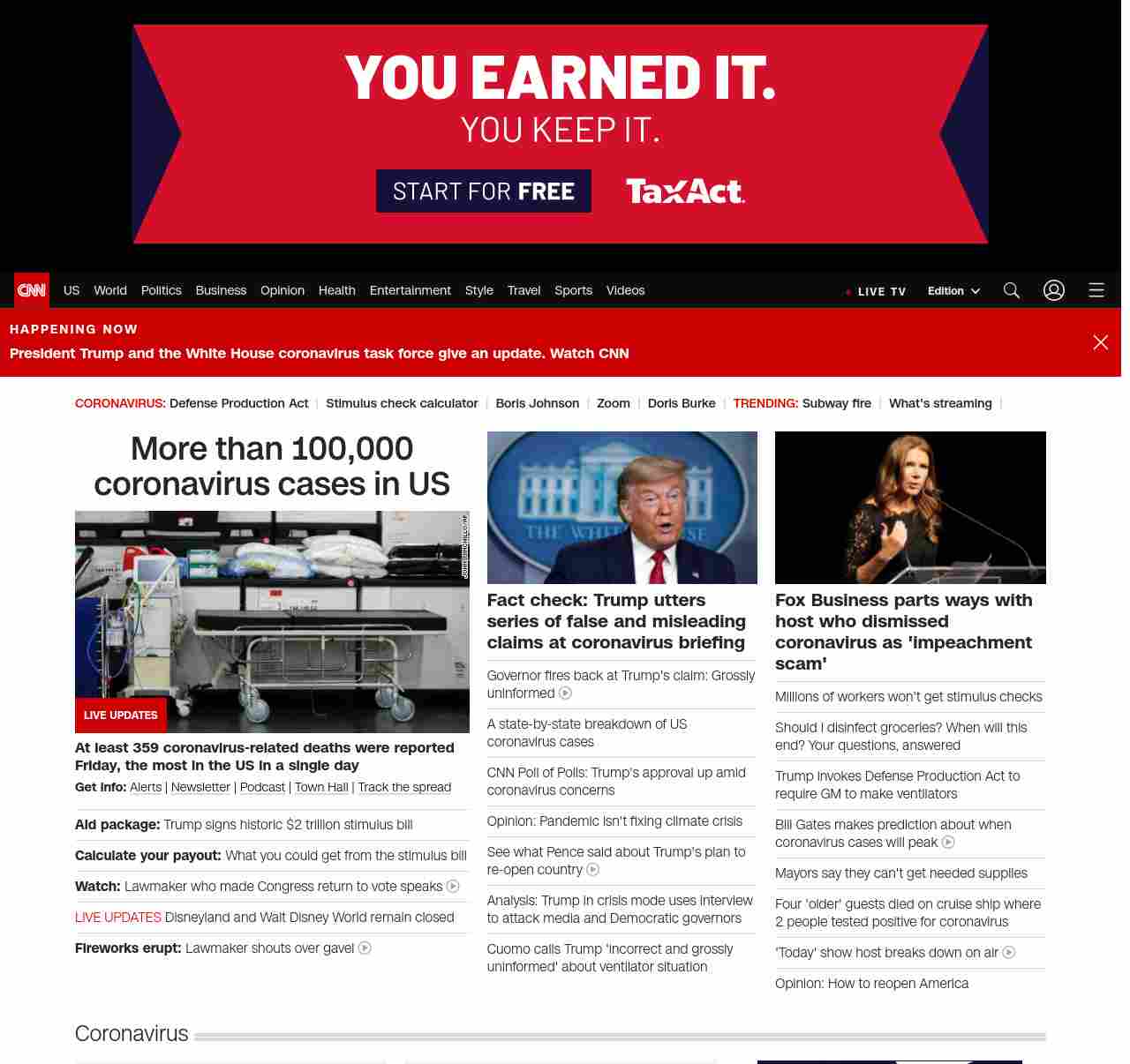 || screaming-banner-text banner-text-size–char-44″ data-analytics=”_list-hierarchical-xs_hyperlink_”> More than 100,000 coronavirus cases in US ||” , title: “CNN – Breaking News, Latest News and Videos” , siblings: {“articleList”:[{“uri”:”/2020/03/27/politics/coronavirus-stimulus-house-vote/index.html”,”headline”:”u003cstrong>Aid package:u003c/strong> Trump signs historic $2 trillion stimulus bill”,”thumbnail”:”//cdn.cnn.com/cnnnext/dam/assets/200327142427-01-pelosi-bill-signing-0327-small-11.jpg”,”duration”:””,”description”:”u003cstrong>Get info:u003c/strong> u003ca href=”https://www.cnn.com/specials/mobile-apps” target=”_blank”>Alertsu003c/a> | u003ca href=”https://www.cnn.com/specials/coronavirus-newsletter?utm_source=hp&source=hp” target=”_blank”>Newsletteru003c/a> | u003ca href=”https://www.cnn.com/audio/podcasts/corona-virus”>Podcastu003c/a> | u003ca href=”http://www.cnn.com/2020/03/26/app-news-section/full-coronavirus-town-hall-march-26-2020-app/index.html” target=”_blank”>Town Hallu003c/a> | u003ca href=”https://www.cnn.com/interactive/2020/health/coronavirus-maps-and-cases/” target=”_blank”>Track the spreadu003c/a>”,”layout”:””