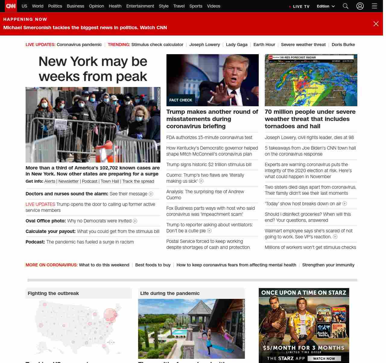 || screaming-banner-text banner-text-size–char-32″ data-analytics=”_list-hierarchical-xs_article_”> New York may be weeks from peak ||” , title: “CNN – Breaking News, Latest News and Videos” , siblings: {“articleList”:[{“uri”:”/2020/03/28/health/us-coronavirus-weekend-saturday/index.html”,”headline”:”u003cstrong>More than a third of America’s 102,702 known cases are in New York. Now other states are preparing for a surgeu003c/strong>”,”thumbnail”:”//cdn.cnn.com/cnnnext/dam/assets/200328031805-01-coronavirus-new-york-0327-small-11.jpg”,”duration”:””,”description”:”u003cstrong>Get info:u003c/strong> u003ca href=”https://www.cnn.com/specials/mobile-apps” target=”_blank”>Alertsu003c/a> | u003ca href=”https://www.cnn.com/specials/coronavirus-newsletter?utm_source=hp&source=hp” target=”_blank”>Newsletteru003c/a> | u003ca href=”https://www.cnn.com/audio/podcasts/corona-virus”>Podcastu003c/a> | u003ca href=”http://www.cnn.com/2020/03/26/app-news-section/full-coronavirus-town-hall-march-26-2020-app/index.html” target=”_blank”>Town Hallu003c/a> | u003ca href=”https://www.cnn.com/interactive/2020/health/coronavirus-maps-and-cases/” target=”_blank”>Track the spreadu003c/a>”,”layout”:””
