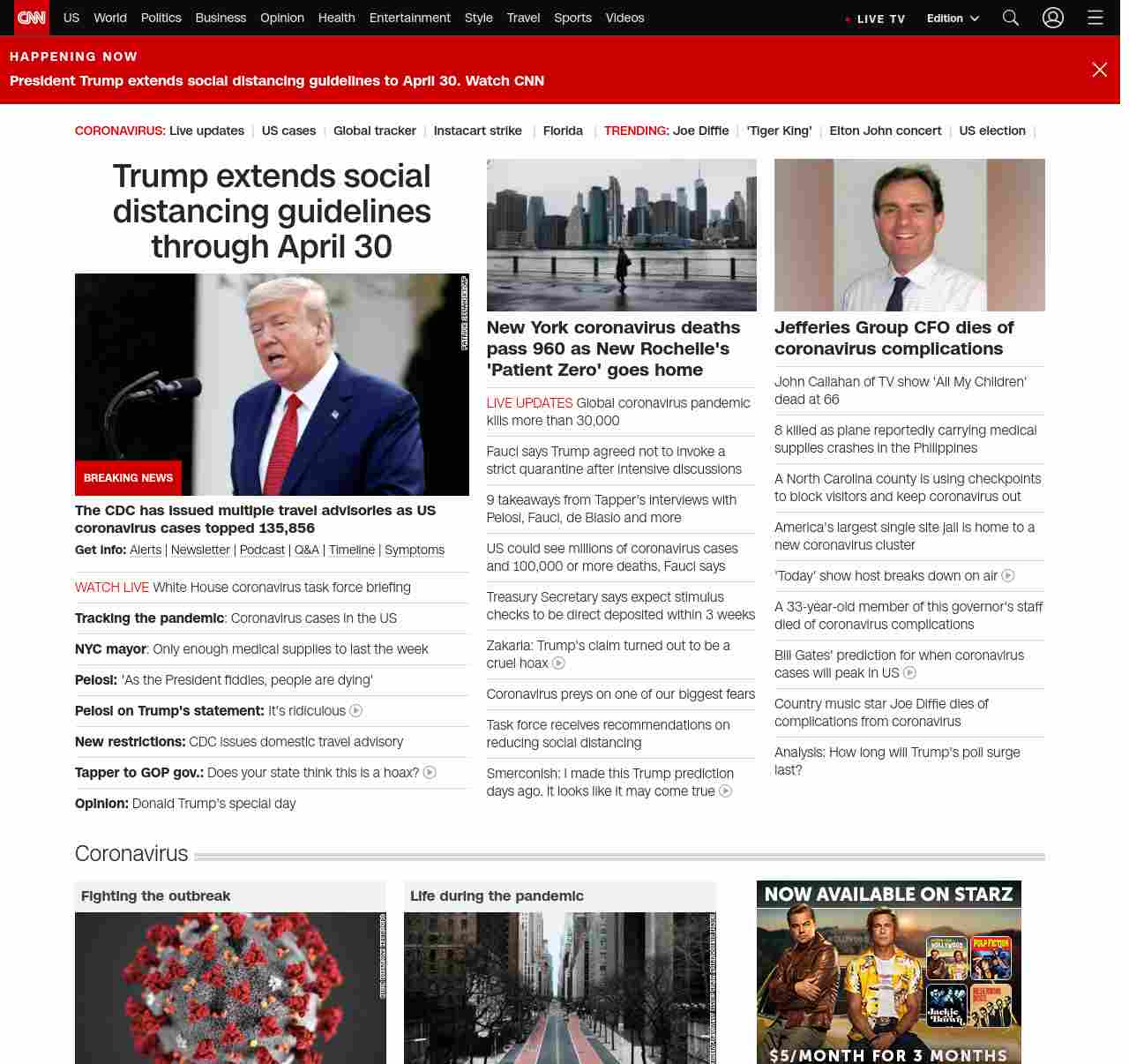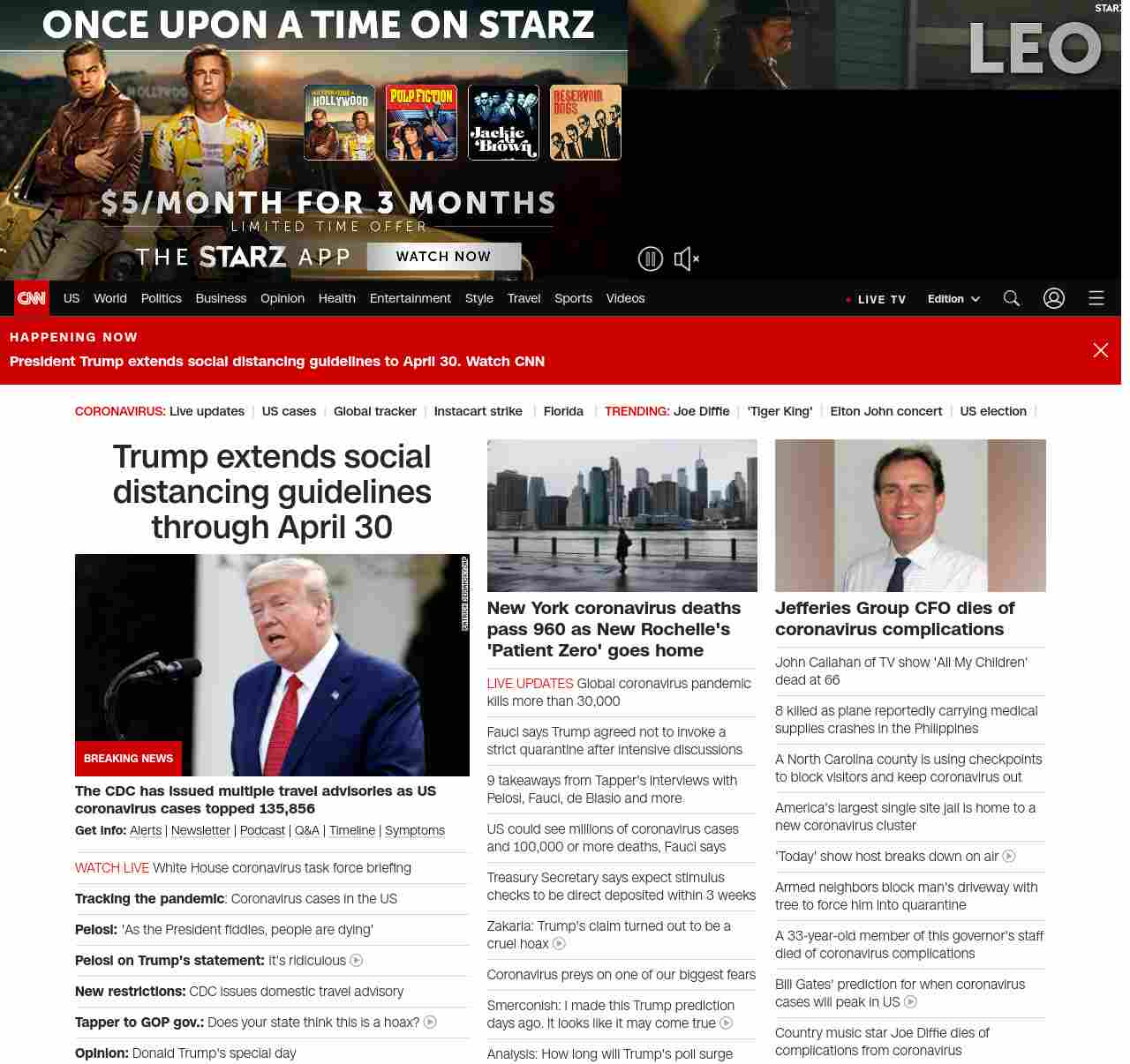 || screaming-banner-text banner-text-size–char-47″ data-analytics=”_list-hierarchical-xs_hyperlink_”> Trump extends social distancing guidelines through April 30 ||” , title: “CNN – Breaking News, Latest News and Videos” , siblings: {“articleList”:[{“uri”:”/2020/03/29/politics/nancy-pelosi-coronavirus-cnntv/index.html”,”headline”:”u003cstrong>Pelosi:u003c/strong>u003cstrong> u003c/strong>’As the President fiddles, people are dying'”,”thumbnail”:”//cdn.cnn.com/cnnnext/dam/assets/181105180156-01-nancy-pelosi-house-speaker-race-110518-small-11.jpg”,”duration”:””,”description”:”u003cstrong>Get info:u003c/strong> u003ca href=”https://www.cnn.com/specials/mobile-apps” target=”_blank”>Alertsu003c/a> | u003ca href=”https://www.cnn.com/specials/coronavirus-newsletter?utm_source=hp&source=hp” target=”_blank”>Newsletteru003c/a> | u003ca href=”https://www.cnn.com/audio/podcasts/corona-virus”>Podcastu003c/a> | u003ca href=”https://www.cnn.com/interactive/2020/health/coronavirus-questions-answers/” target=”_blank”>Q&Au003c/a> | u003ca href=”https://www.cnn.com/2020/02/06/health/wuhan-coronavirus-timeline-fast-facts/index.html” target=”_blank”>Timelineu003c/a> | u003ca href=”https://www.cnn.com/2020/03/28/health/coronavirus-symptoms-list-what-to-do-wellness/index.html” target=”_blank”>Symptomsu003c/a>”,”layout”:””