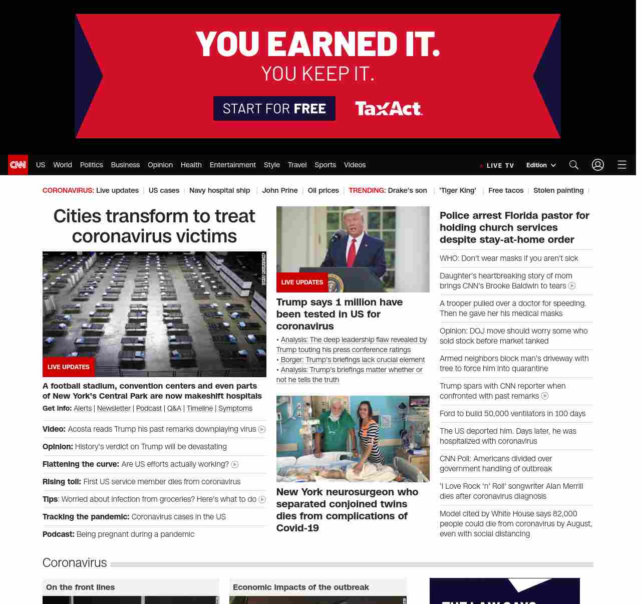 || screaming-banner-text banner-text-size–char-47″ data-analytics=”_list-hierarchical-xs_hyperlink_”> Cities transform to treat coronavirus victims ||” , title: “CNN – Breaking News, Latest News and Videos” , siblings: {“articleList”:[{“uri”:”/videos/politics/2020/03/30/trump-coronavirus-acosta-question-sot-vpx.cnn”,”headline”:”u003cstrong>Video: u003c/strong>Acosta reads Trump his past remarks downplaying virus”,”thumbnail”:”//cdn.cnn.com/cnnnext/dam/assets/200330172028-president-trump-white-house-coronavirus-task-force-briefing-03302020-small-11.jpg”,”duration”:”01:47″,”description”:”President Donald Trump criticized CNN’s Jim Acosta for asking how Trump would defend his past statements that downplayed the coronavirus in the early phases of the US outbreak. “,”layout”:””,”iconType”:”video”