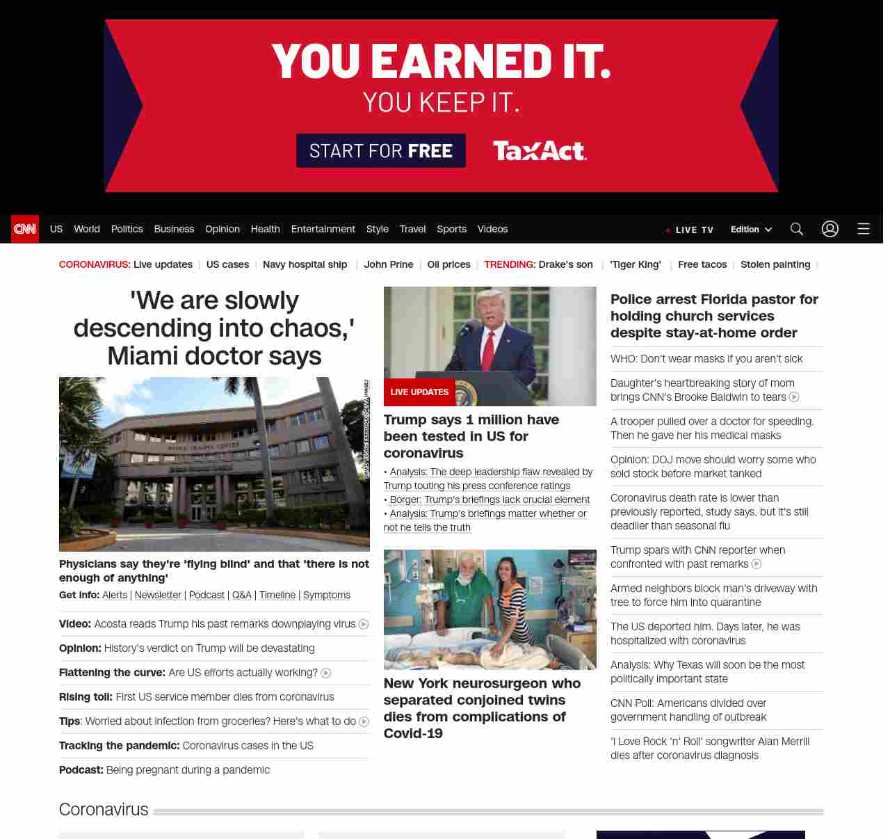 || screaming-banner-text banner-text-size–char-47″ data-analytics=”_list-hierarchical-xs_article_”> ‘We are slowly descending into chaos,’ Miami doctor says ||” , title: “CNN – Breaking News, Latest News and Videos” , siblings: {“articleList”:[{“uri”:”/2020/03/30/health/us-coronavirus-updates-monday/index.html”,”headline”:”u003cstrong>Physicians say they’re ‘flying blind’ and that ‘there is not enough of anything’u003c/strong>”,”thumbnail”:”//cdn.cnn.com/cnnnext/dam/assets/200330194448-jackson-memorial-hospital-file-restricted-small-11.jpg”,”duration”:””,”description”:”u003cstrong>Get info:u003c/strong> u003ca href=”https://www.cnn.com/specials/mobile-apps” target=”_blank”>Alertsu003c/a> | u003ca href=”https://www.cnn.com/specials/coronavirus-newsletter?utm_source=hp&source=hp” target=”_blank”>Newsletteru003c/a> | u003ca href=”https://www.cnn.com/audio/podcasts/corona-virus”>Podcastu003c/a> | u003ca href=”https://www.cnn.com/interactive/2020/health/coronavirus-questions-answers/” target=”_blank”>Q&Au003c/a> | u003ca href=”https://www.cnn.com/2020/02/06/health/wuhan-coronavirus-timeline-fast-facts/index.html” target=”_blank”>Timelineu003c/a> | u003ca href=”https://www.cnn.com/2020/03/28/health/coronavirus-symptoms-list-what-to-do-wellness/index.html” target=”_blank”>Symptomsu003c/a>”,”layout”:””