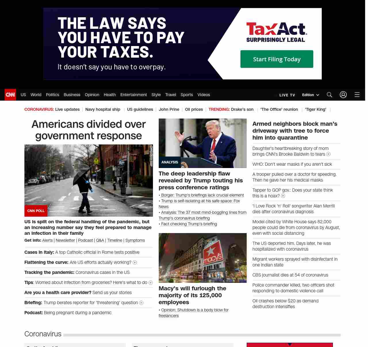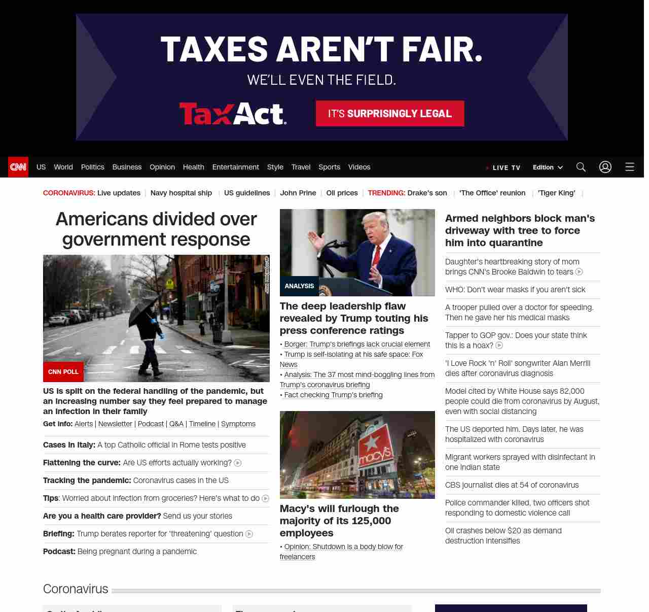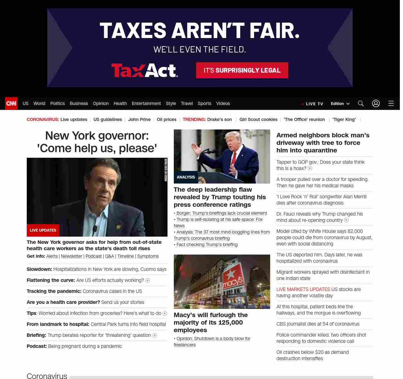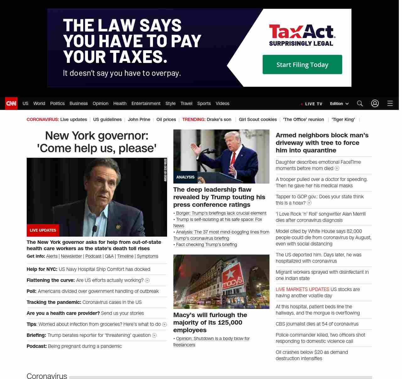 || screaming-banner-text banner-text-size–char-44″ data-analytics=”_list-hierarchical-xs_hyperlink_”> New York governor: ‘Come help us, please’ ||” , title: “CNN – Breaking News, Latest News and Videos” , siblings: {“articleList”:[{“uri”:”/2020/03/30/politics/cnn-poll-americans-coronavirus-government-approval/index.html”,”headline”:”u003cstrong>US is split on the federal handling of the pandemic, but an increasing number say they feel prepared to manage an infection in their familyu003c/strong>”,”thumbnail”:”//cdn.cnn.com/cnnnext/dam/assets/200330012544-01-coronavirus-new-york-0329-small-11.jpg”,”duration”:””,”description”:”u003cstrong>Get info:u003c/strong> u003ca href=”https://www.cnn.com/specials/mobile-apps” target=”_blank”>Alertsu003c/a> | u003ca href=”https://www.cnn.com/specials/coronavirus-newsletter?utm_source=hp&source=hp” target=”_blank”>Newsletteru003c/a> | u003ca href=”https://www.cnn.com/audio/podcasts/corona-virus”>Podcastu003c/a> | u003ca href=”https://www.cnn.com/interactive/2020/health/coronavirus-questions-answers/” target=”_blank”>Q&Au003c/a> | u003ca href=”https://www.cnn.com/2020/02/06/health/wuhan-coronavirus-timeline-fast-facts/index.html” target=”_blank”>Timelineu003c/a> | u003ca href=”https://www.cnn.com/2020/03/28/health/coronavirus-symptoms-list-what-to-do-wellness/index.html” target=”_blank”>Symptomsu003c/a>”,”layout”:””