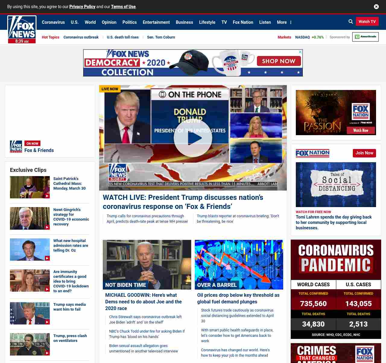 FN: [[WORSE BEFORE BETTER]] Trump says coronavirus to peak ‘around Easter,’ slams Pelosi criticism in ‘Fox & Friends’ interview ((lubuntu at wor3))