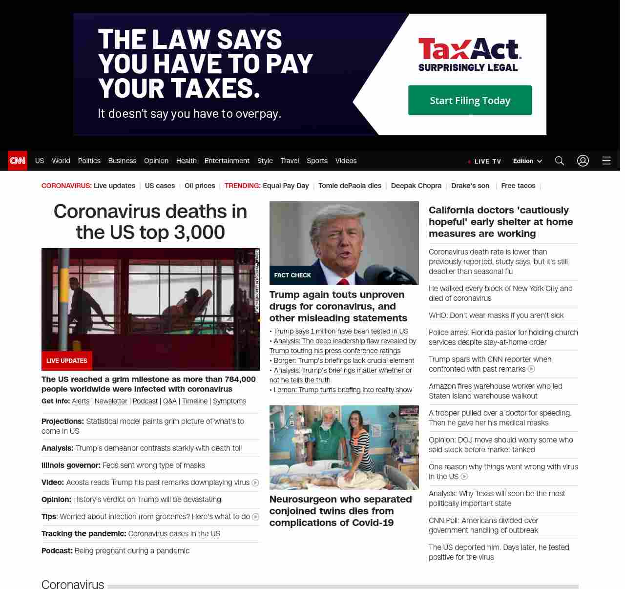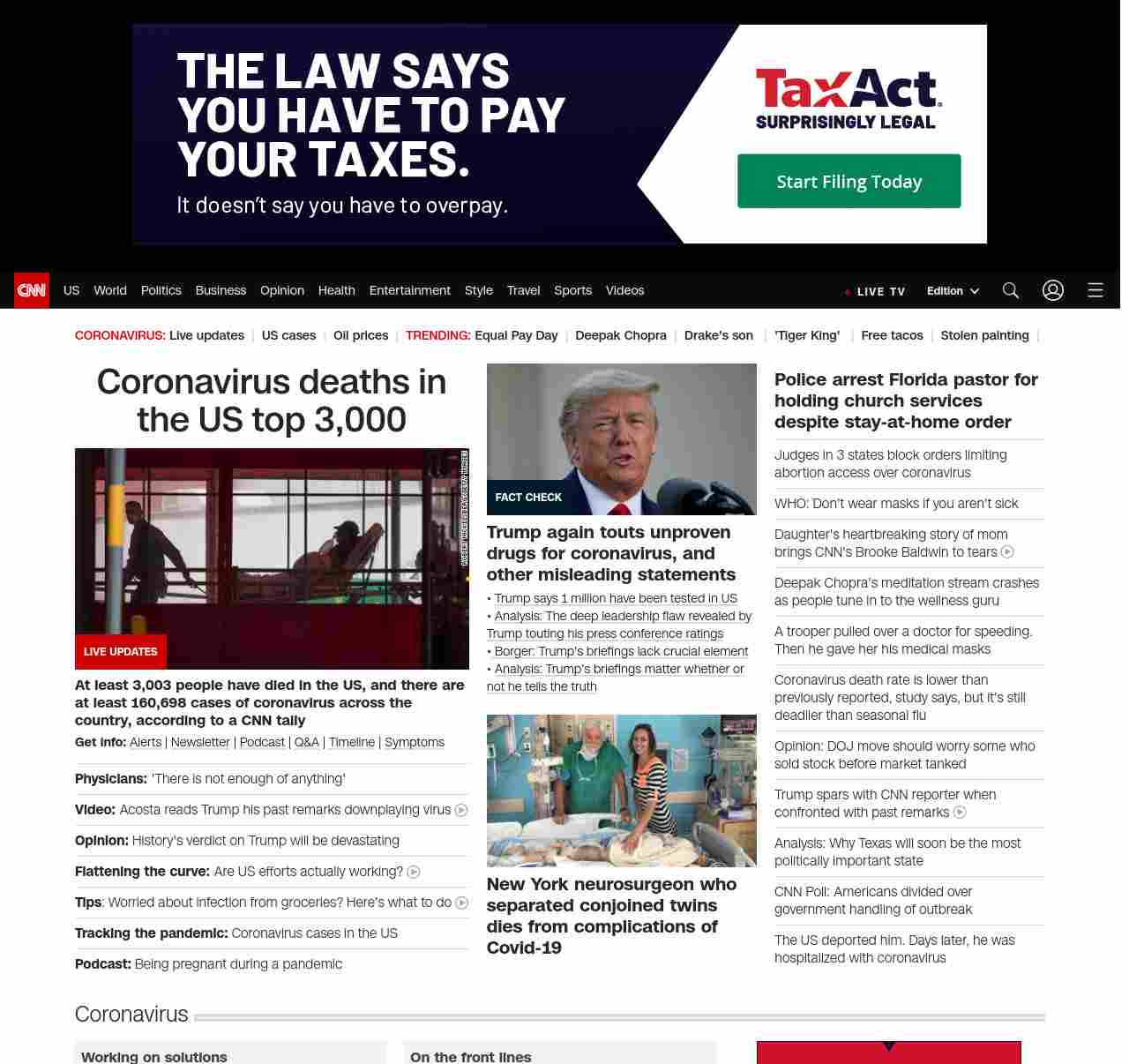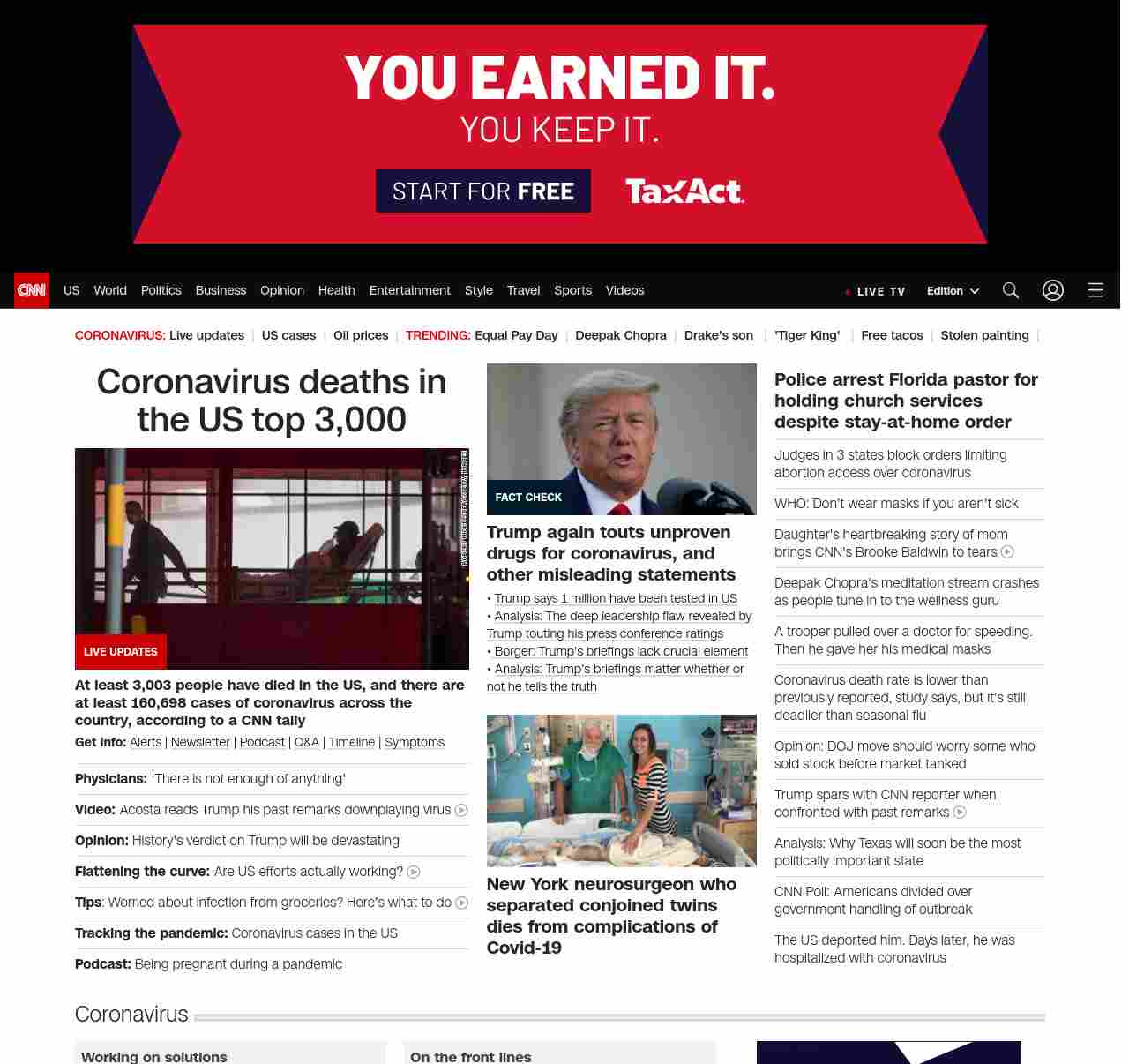 || screaming-banner-text banner-text-size–char-41″ data-analytics=”_list-hierarchical-xs_hyperlink_”> Coronavirus deaths in the US top 3,000 ||” , title: “CNN – Breaking News, Latest News and Videos” , siblings: {“articleList”:[{“uri”:”/2020/03/30/health/coronavirus-us-ihme-model-us/index.html”,”headline”:”u003cstrong>Projections: u003c/strong>Statistical model paints grim picture of what’s to come in US”,”thumbnail”:”//cdn.cnn.com/cnnnext/dam/assets/200328031805-01-coronavirus-new-york-0327-small-11.jpg”,”duration”:””,”description”:””,”layout”:””
