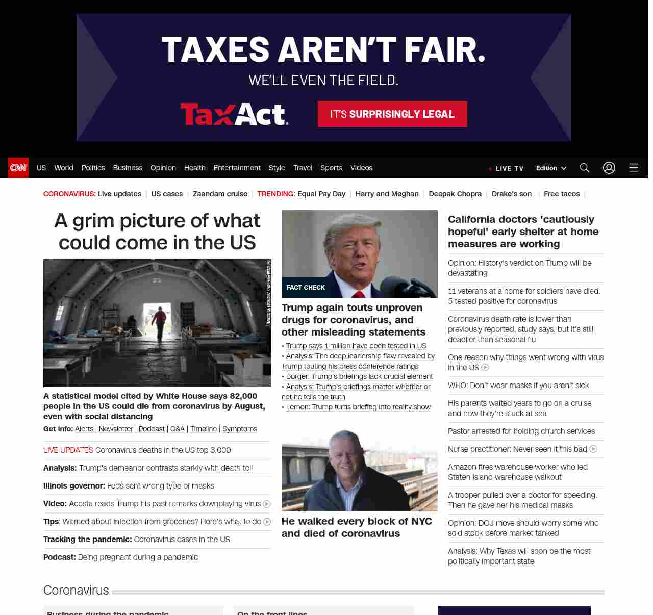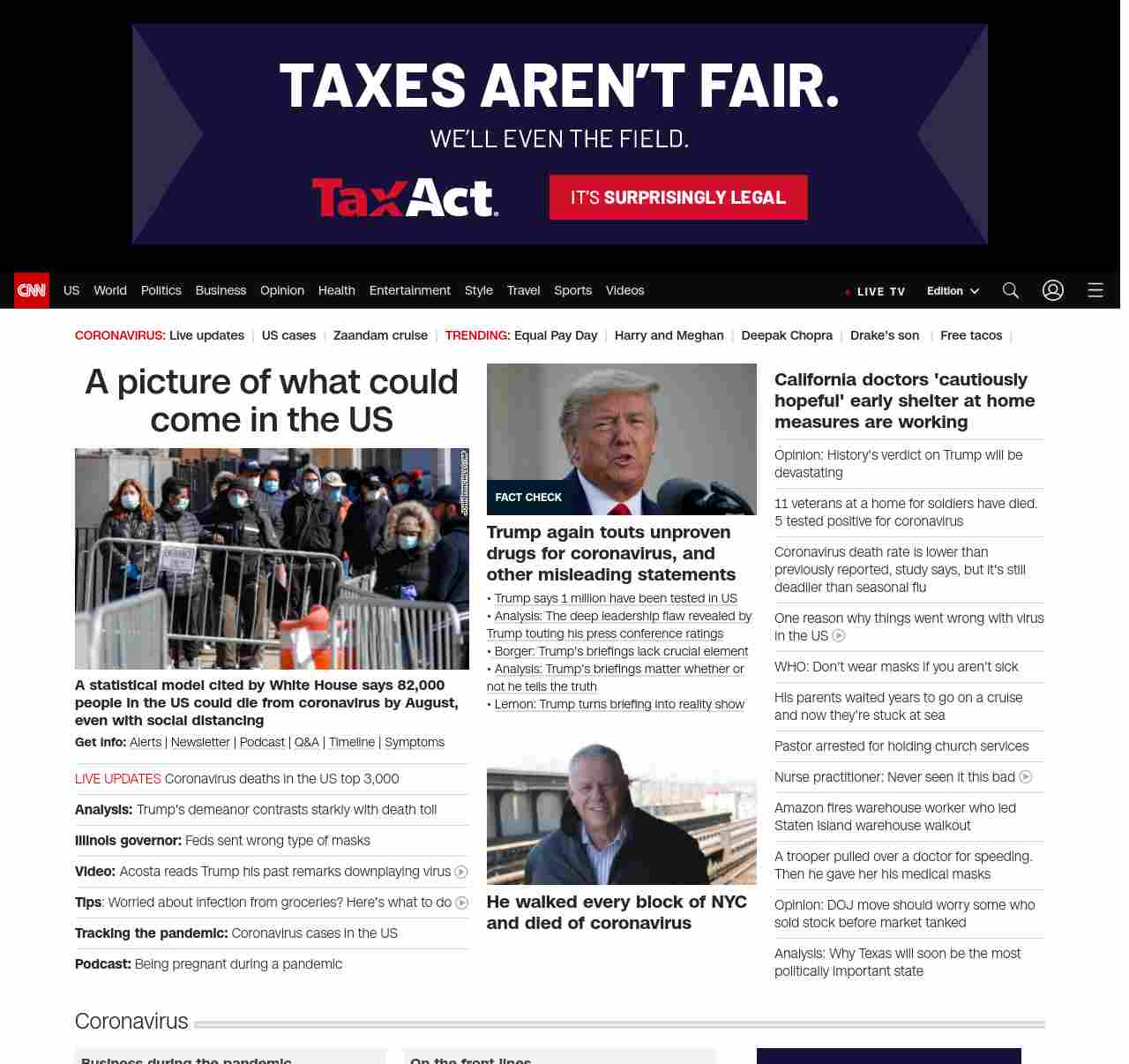 CNN3: “:”u003cstrong>A statistical model cited by White House says 82, 000 people in the US could die from coronavirus by August, even with social distancingu003c/strong>”, “BANNER=|pagerendered| ((lubuntu at wor3))