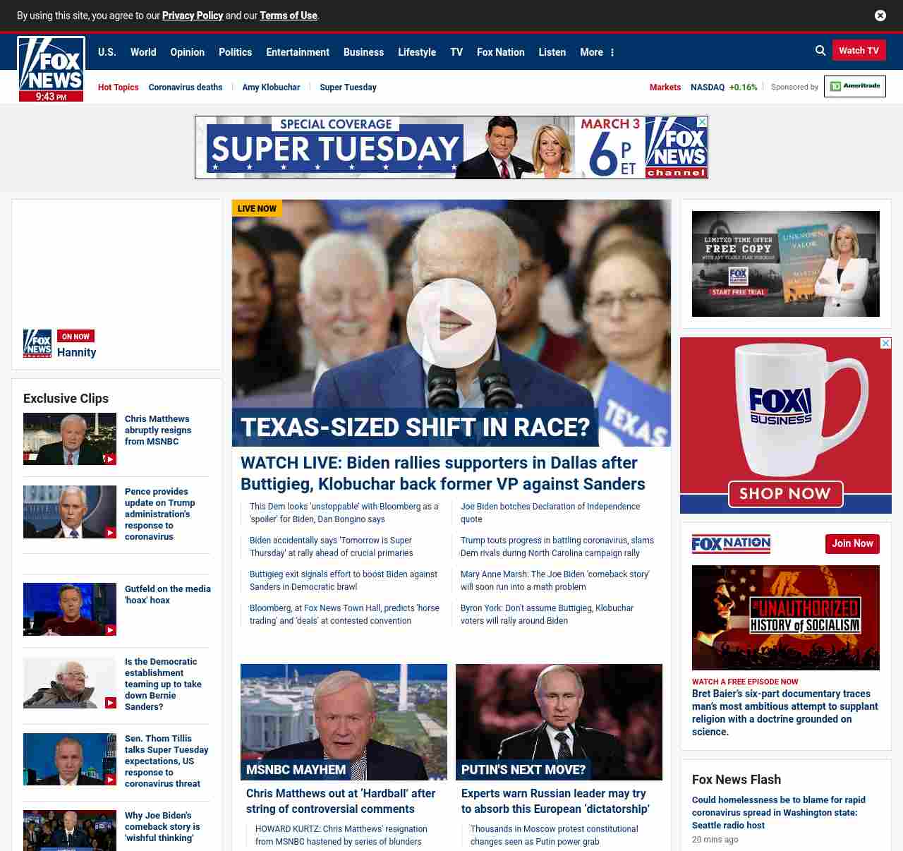 FN: [[TEXAS-SIZED SHIFT IN RACE?]] WATCH LIVE: Biden rallies supporters in Dallas after Buttigieg, Klobuchar back former VP against Sanders ((lubuntu at wor3))