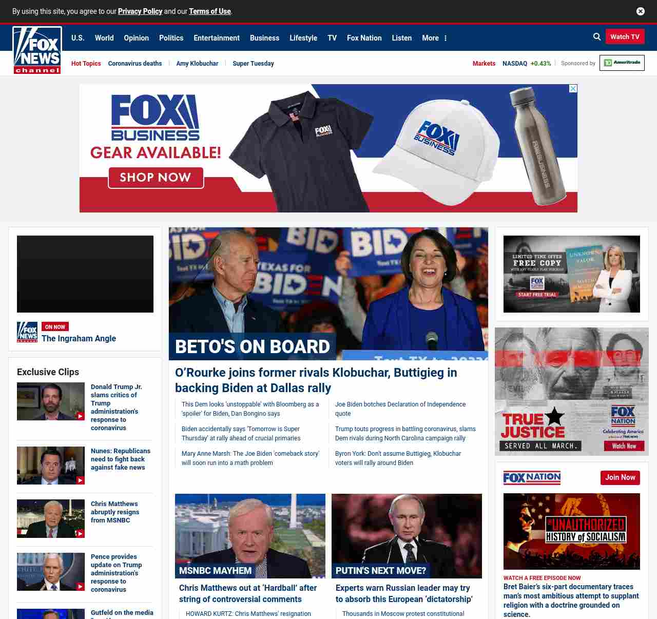 FN: [[BETO'S ON BOARD]] WATCH LIVE: O’Rourke joins former rivals Klobuchar, Buttigieg in backing Biden at Dallas rally ((lubuntu at wor3))
