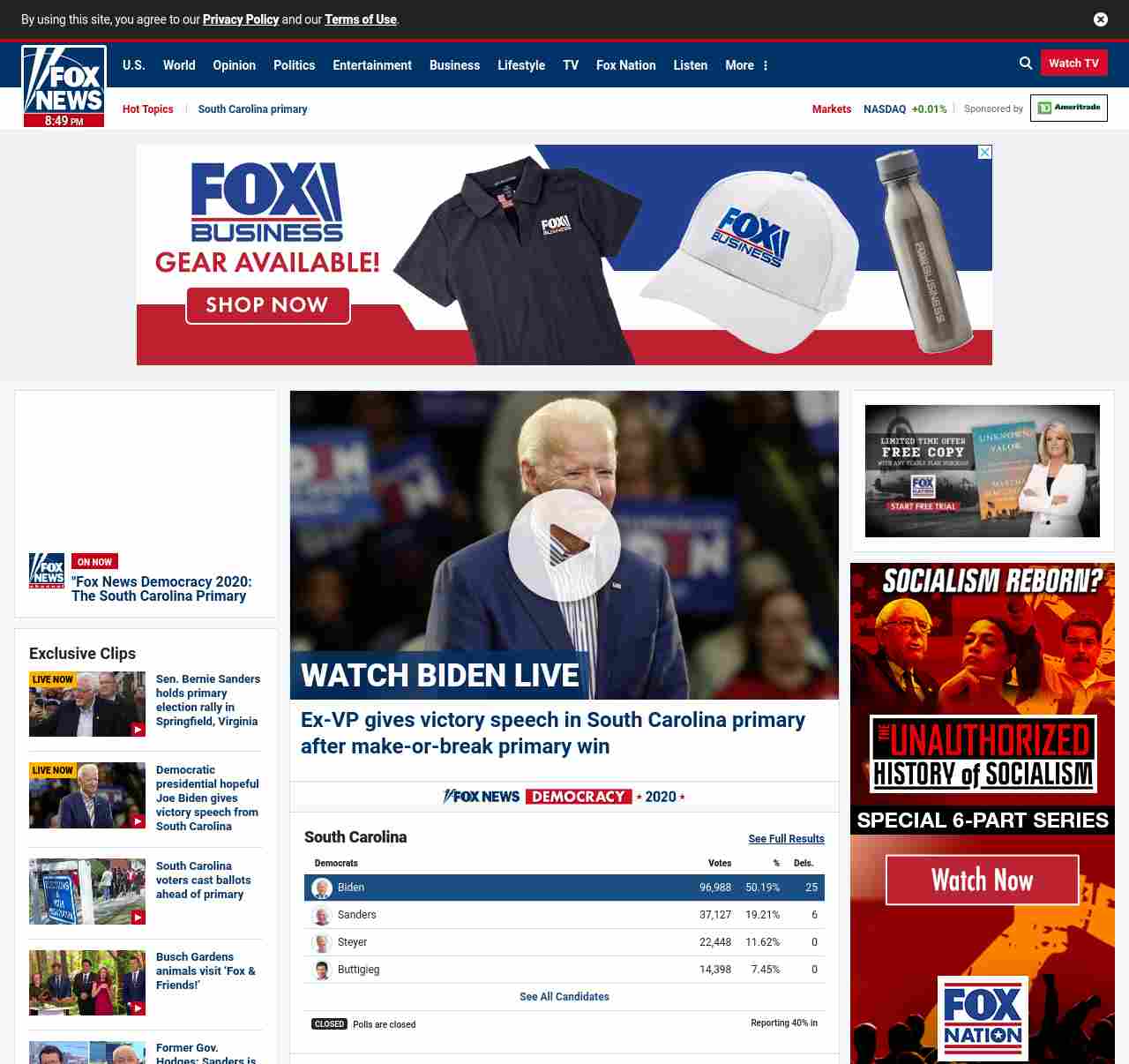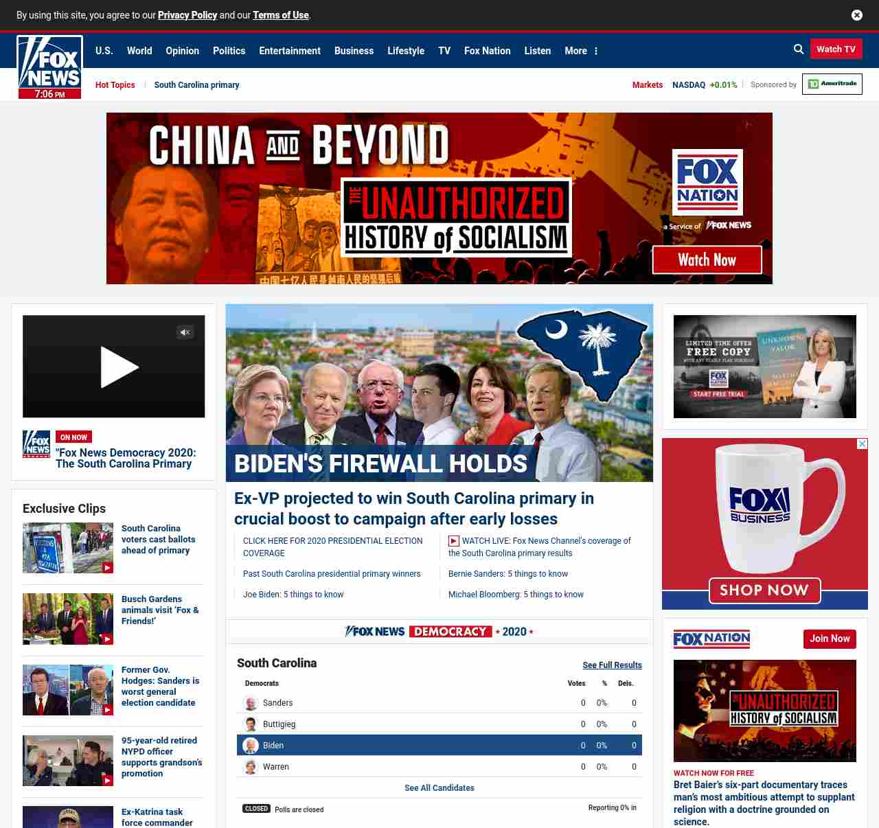 FN: [[BIDEN' S FIREWALL HOLDS]] Ex-VP projected to win South Carolina primary in crucial boost to campaign after early losses ((lubuntu at wor3))