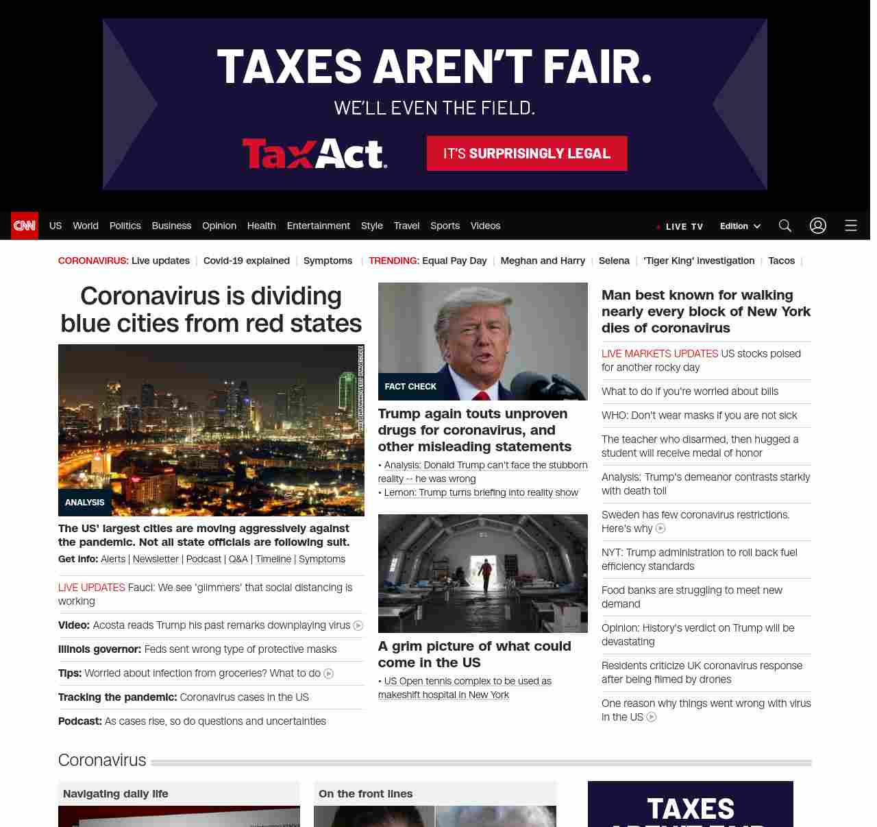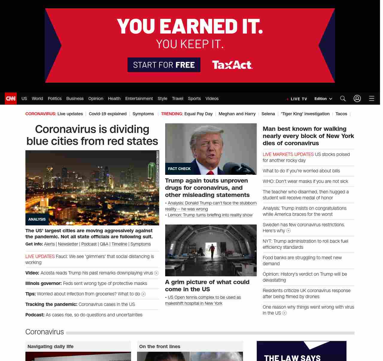 || screaming-banner-text banner-text-size–char-47″ data-analytics=”_list-hierarchical-xs_article_”> Coronavirus is dividing blue cities from red states ||” , title: “CNN – Breaking News, Latest News and Videos” , siblings: {“articleList”:[{“uri”:”/2020/03/31/politics/red-states-blue-cities-coronavirus/index.html”,”headline”:”u003cstrong>The US’ largest cities are moving aggressively against the pandemic. Not all state officials are following suit.u003c/strong>”,”thumbnail”:”//cdn.cnn.com/cnnnext/dam/assets/170408183158-dallas-skyline-file-photo-small-11.jpg”,”duration”:””,”description”:”u003cstrong>Get info:u003c/strong> u003ca href=”https://www.cnn.com/specials/mobile-apps” target=”_blank”>Alertsu003c/a> | u003ca href=”https://www.cnn.com/specials/coronavirus-newsletter?utm_source=hp&source=hp” target=”_blank”>Newsletteru003c/a> | u003ca href=”https://www.cnn.com/audio/podcasts/corona-virus”>Podcastu003c/a> | u003ca href=”https://www.cnn.com/interactive/2020/health/coronavirus-questions-answers/” target=”_blank”>Q&Au003c/a> | u003ca href=”https://www.cnn.com/2020/02/06/health/wuhan-coronavirus-timeline-fast-facts/index.html” target=”_blank”>Timelineu003c/a> | u003ca href=”https://www.cnn.com/2020/03/31/health/coronavirus-symptoms-list-what-to-do-wellness/index.html” target=”_blank”>Symptomsu003c/a>”,”layout”:””