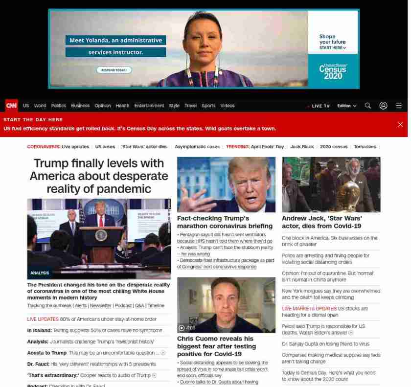 || screaming-banner-text banner-text-size–char-47″ data-analytics=”_list-hierarchical-xs_article_”> Trump finally levels with America about desperate reality of pandemic ||” , title: “CNN – Breaking News, Latest News and Videos” , siblings: {“articleList”:[{“uri”:”/2020/03/31/politics/trump-coronavirus/index.html”,”headline”:”u003cstrong>The President changed his tone on the desperate reality of coronavirus in one of the most chilling White House moments in modern historyu003c/strong>”,”thumbnail”:”//cdn.cnn.com/cnnnext/dam/assets/200331180942-04-coronavirus-presser-0331-small-11.jpg”,”duration”:””,”description”:”u003ca href=”https://www.cnn.com/interactive/2020/health/coronavirus-us-maps-and-cases/” target=”_blank”>Tracking the outbreaku003c/a> | u003ca href=”https://www.cnn.com/specials/mobile-apps” target=”_blank”>Alertsu003c/a> | u003ca href=”https://www.cnn.com/specials/coronavirus-newsletter?utm_source=hp&source=hp” target=”_blank”>Newsletteru003c/a> | u003ca href=”https://www.cnn.com/audio/podcasts/corona-virus”>Podcastu003c/a> | u003ca href=”https://www.cnn.com/interactive/2020/health/coronavirus-questions-answers/” target=”_blank”>Q&Au003c/a> | u003ca href=”https://www.cnn.com/2020/02/06/health/wuhan-coronavirus-timeline-fast-facts/index.html” target=”_blank”>Timelineu003c/a> “,”layout”:””