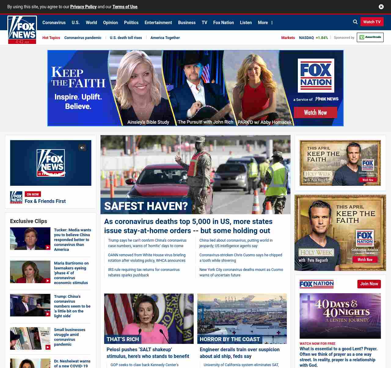 FN: [[SAFEST HAVEN?]] As coronavirus deaths top 5, 000 in US, more states issue stay-at-home orders — but some holding out ((lubuntu at wor3))