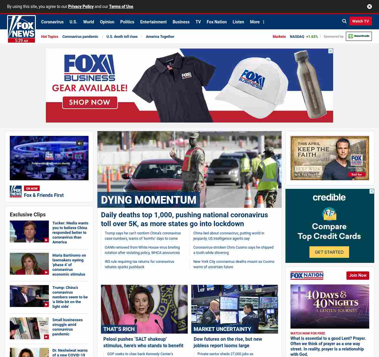 =”https://www.foxnews.com/politics/coronavirus-deaths-top-5000-in-us-as-more-states-issue-stay-at-home-orders“>Daily deaths top 1,000, pushing national coronavirus toll over 5K, as more states go into lockdown