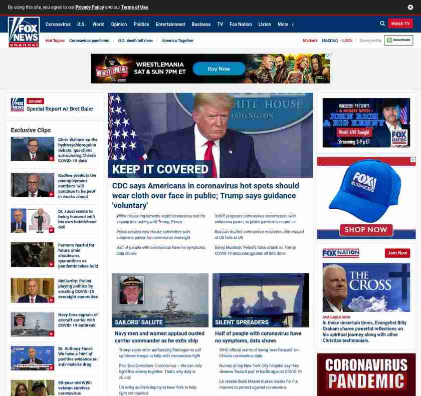 FN: [[ORDERING A COVER-UP?]] Trump says CDC wants Americans to cover faces with cloth amid coronavirus ((lubuntu at wor3))