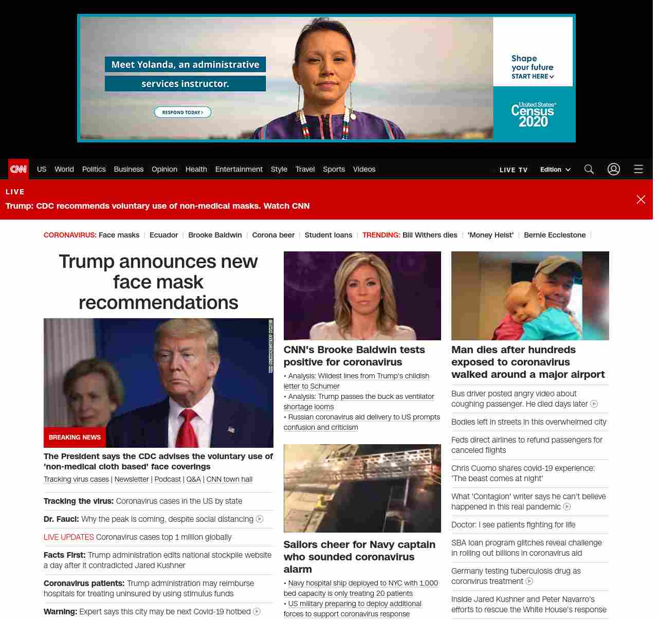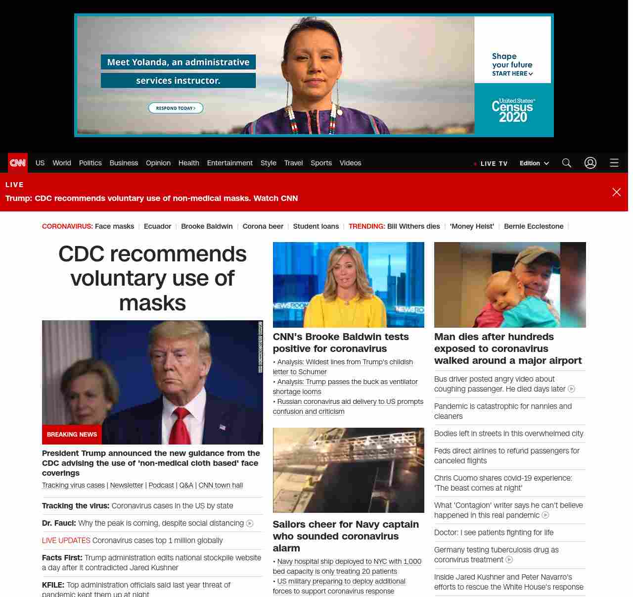 || screaming-banner-text banner-text-size–char-38″ data-analytics=”_list-hierarchical-xs_article_”> CDC recommends voluntary use of masks ||” , title: “CNN – Breaking News, Latest News and Videos” , siblings: {“articleList”:[{“uri”:”/2020/04/03/politics/trump-white-house-face-masks/index.html”,”headline”:”u003cstrong>President Trump announced the new guidance from the agency advising the use of ‘non-medical cloth based’ face coveringsu003c/strong>”,”thumbnail”:”//cdn.cnn.com/cnnnext/dam/assets/200403175217-01-trump-coronavirus-presser-0403-small-11.jpg”,”duration”:””,”description”:”u003ca href=”https://www.cnn.com/interactive/2020/health/coronavirus-maps-and-cases/” target=”_blank”>Tracking virus casesu003c/a> | u003ca href=”https://www.cnn.com/specials/coronavirus-newsletter?utm_source=hp&source=hp” target=”_blank”>Newsletteru003c/a> | u003ca href=”https://www.cnn.com/audio/podcasts/corona-virus”>Podcastu003c/a> | u003ca href=”https://www.cnn.com/interactive/2020/health/coronavirus-questions-answers/” target=”_blank”>Q&Au003c/a> | u003ca href=”https://www.cnn.com/2020/04/02/app-news-section/full-coronavirus-town-hall-april-2-2020-app/index.html” target=”_blank”>CNN town hallu003c/a>”,”layout”:””