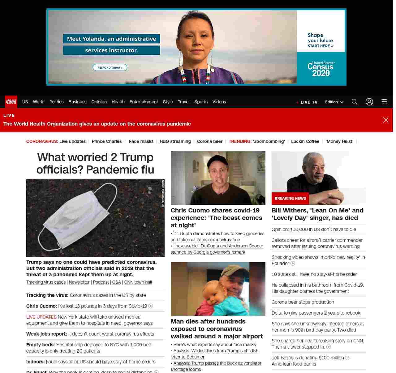 || screaming-banner-text banner-text-size–char-47″ data-analytics=”_list-hierarchical-xs_article_”> What worried 2 Trump officials? Pandemic flu ||” , title: “CNN – Breaking News, Latest News and Videos” , siblings: {“articleList”:[{“uri”:”/2020/04/03/politics/kfile-officials-worried-over-pandemic-last-year/index.html”,”headline”:”u003cstrong>Trump says no one could have predicted coronavirus. But two administration officials said in 2019 that the threat of a pandemic kept them up at night.u003c/strong>”,”thumbnail”:”//cdn.cnn.com/cnnnext/dam/assets/200402223244-03-coronavirus-0402-new-york-small-11.jpg”,”duration”:””,”description”:”u003ca href=”https://www.cnn.com/interactive/2020/health/coronavirus-maps-and-cases/” target=”_blank”>Tracking virus casesu003c/a> | u003ca href=”https://www.cnn.com/specials/coronavirus-newsletter?utm_source=hp&source=hp” target=”_blank”>Newsletteru003c/a> | u003ca href=”https://www.cnn.com/audio/podcasts/corona-virus”>Podcastu003c/a> | u003ca href=”https://www.cnn.com/interactive/2020/health/coronavirus-questions-answers/” target=”_blank”>Q&Au003c/a> | u003ca href=”https://www.cnn.com/2020/04/02/app-news-section/full-coronavirus-town-hall-april-2-2020-app/index.html” target=”_blank”>CNN town hallu003c/a>”,”layout”:””