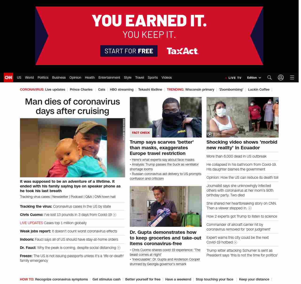 || screaming-banner-text banner-text-size–char-38″ data-analytics=”_list-hierarchical-xs_article_”> More than 6,000 dead in US outbreak ||” , title: “CNN – Breaking News, Latest News and Videos” , siblings: {“articleList”:[{“uri”:”/2020/04/03/health/us-coronavirus-friday/index.html”,”headline”:”u003cstrong>Experts say aggressive social distancing measures are now more important than ever to keep death toll downu003c/strong>”,”thumbnail”:”//cdn.cnn.com/cnnnext/dam/assets/200403033822-coronavirus-masks-0401-small-11.jpg”,”duration”:””,”description”:”u003ca href=”https://www.cnn.com/interactive/2020/health/coronavirus-us-maps-and-cases/” target=”_blank”>Tracking virus casesu003c/a> | u003ca href=”https://www.cnn.com/specials/coronavirus-newsletter?utm_source=hp&source=hp” target=”_blank”>Newsletteru003c/a> | u003ca href=”https://www.cnn.com/audio/podcasts/corona-virus”>Podcastu003c/a> | u003ca href=”https://www.cnn.com/interactive/2020/health/coronavirus-questions-answers/” target=”_blank”>Q&Au003c/a> | u003ca href=”https://www.cnn.com/2020/04/02/app-news-section/full-coronavirus-town-hall-april-2-2020-app/index.html” target=”_blank”>CNN town hallu003c/a>”,”layout”:””