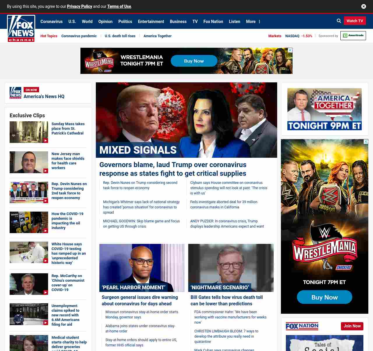 FN: [[MIXED SIGNALS]] Governors blame, laud Trump over coronavirus response as states fight to get critical supplies ((lubuntu at wor3))