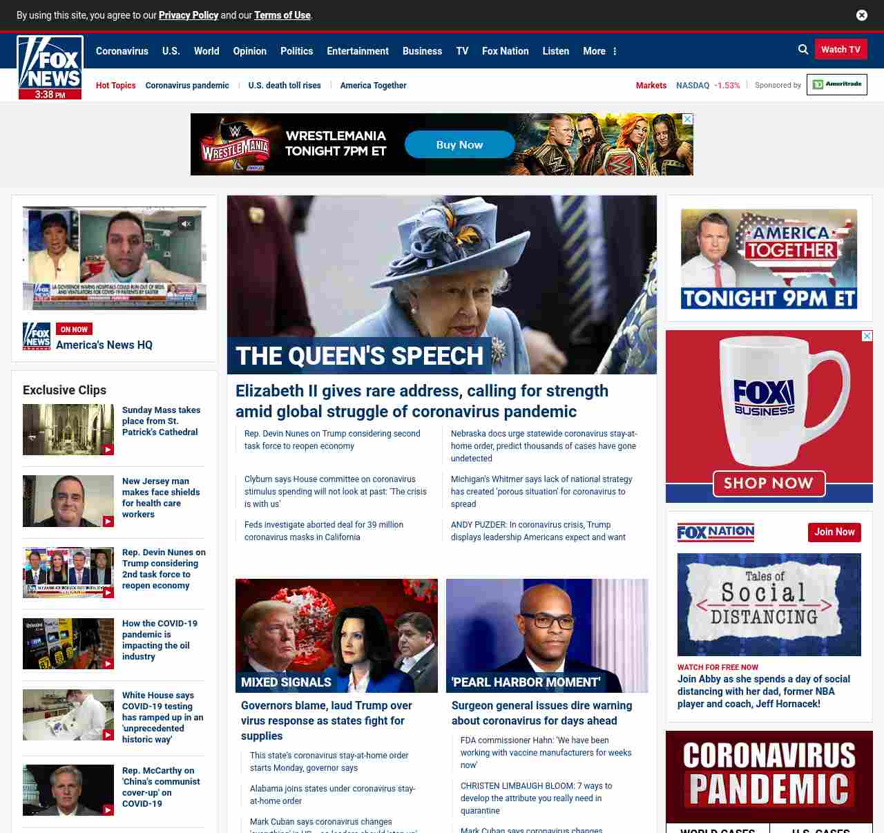 FN: [[THE QUEEN' S SPEECH]] Elizabeth II gives rare address, calling for strength amid global struggle of coronavirus pandemic ((lubuntu at wor3))