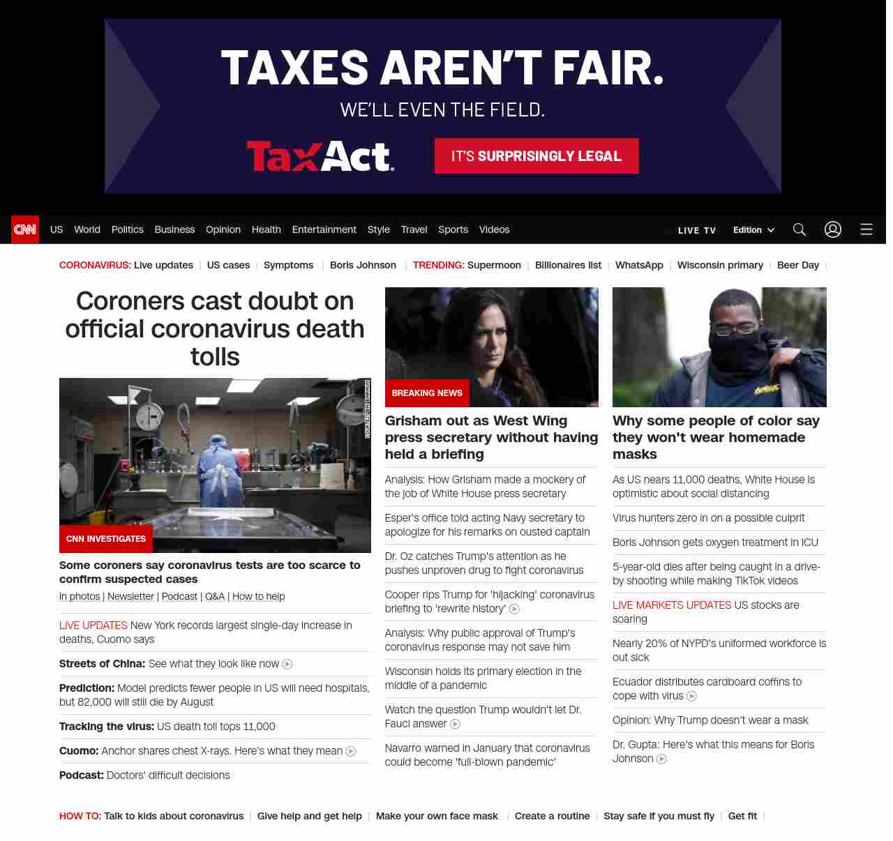 || screaming-banner-text banner-text-size–char-47″ data-analytics=”_list-hierarchical-xs_article_”> Coroners cast doubt on official coronavirus death tolls ||” , title: “CNN – Breaking News, Latest News and Videos” , siblings: {“articleList”:[{“uri”:”/2020/04/06/health/coronavirus-coroners-uncounted-deaths-invs/index.html”,”headline”:”u003cstrong>Some coroners say coronavirus tests are too scarce to confirm suspected casesu003c/strong>”,”thumbnail”:”//cdn.cnn.com/cnnnext/dam/assets/200402161533-01-coronavirus-coroners-barnum-4-small-11.jpg”,”duration”:””,”description”:”u003ca href=”https://www.cnn.com/2020/03/19/world/gallery/novel-coronavirus-outbreak/index.html” target=”_blank”>In photos u003c/a>| u003ca href=”https://www.cnn.com/specials/coronavirus-newsletter?utm_source=hp&source=hp” target=”_blank”>Newsletteru003c/a> | u003ca href=”https://www.cnn.com/audio/podcasts/corona-virus”>Podcastu003c/a> | u003ca href=”https://www.cnn.com/interactive/2020/health/coronavirus-questions-answers/” target=”_blank”>Q&Au003c/a> | u003ca href=”https://www.cnn.com/interactive/2020/health/coronavirus-how-to-help/” target=”_blank”>How to helpu003c/a>”,”layout”:””