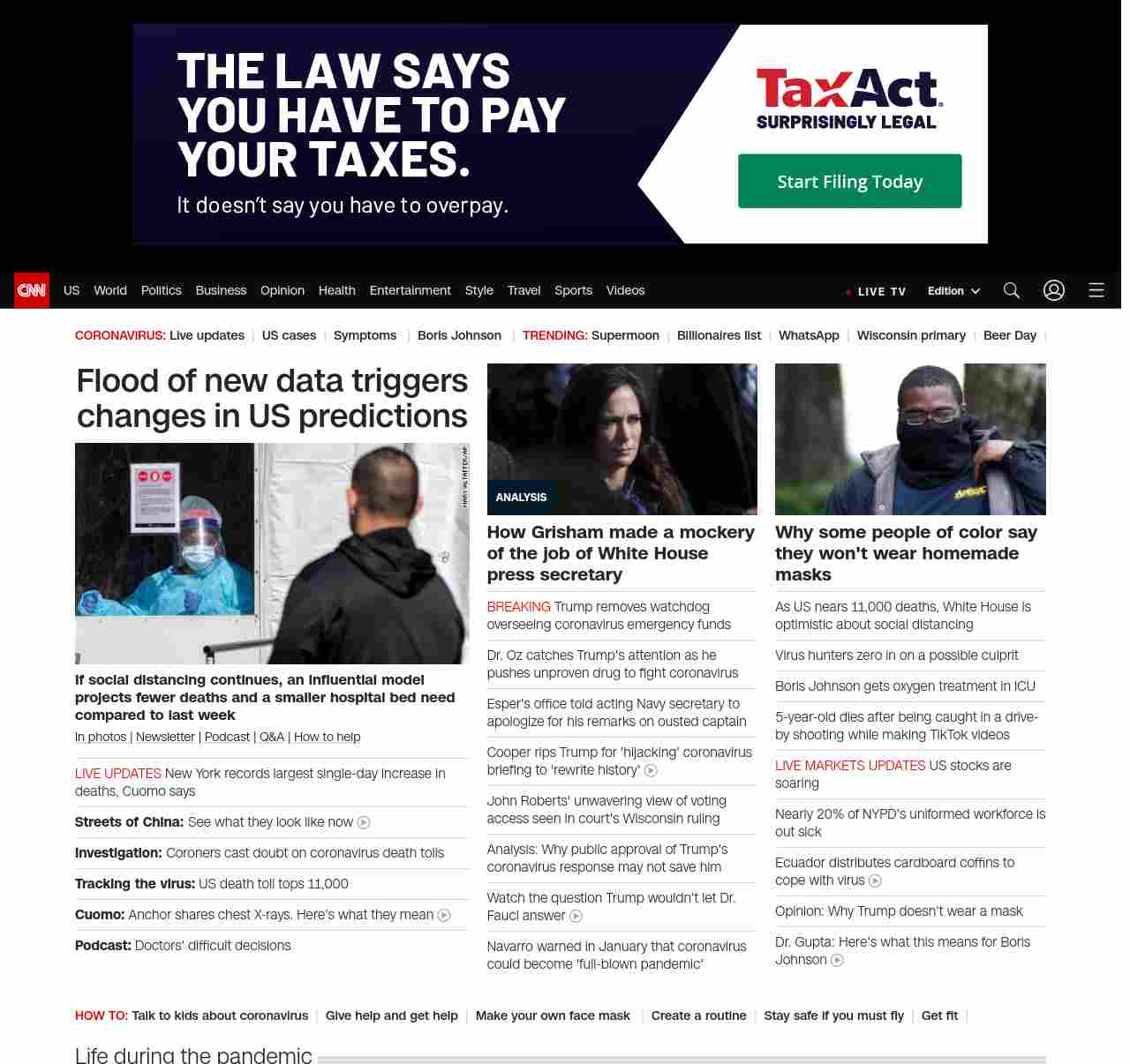 || screaming-banner-text banner-text-size–char-47″ data-analytics=”_list-hierarchical-xs_article_”> Flood of new data triggers changes in US predictions ||” , title: “CNN – Breaking News, Latest News and Videos” , siblings: {“articleList”:[{“uri”:”/2020/04/07/health/ihme-updated-covid19-model/index.html”,”headline”:”u003cstrong>If social distancing continues, an influential model projects fewer deaths and a smaller hospital bed need compared to last weeku003c/strong>”,”thumbnail”:”//cdn.cnn.com/cnnnext/dam/assets/200403180010-02-coronavirus-testing-new-york-small-11.jpg”,”duration”:””,”description”:”u003ca href=”https://www.cnn.com/2020/03/19/world/gallery/novel-coronavirus-outbreak/index.html” target=”_blank”>In photos u003c/a>| u003ca href=”https://www.cnn.com/specials/coronavirus-newsletter?utm_source=hp&source=hp” target=”_blank”>Newsletteru003c/a> | u003ca href=”https://www.cnn.com/audio/podcasts/corona-virus”>Podcastu003c/a> | u003ca href=”https://www.cnn.com/interactive/2020/health/coronavirus-questions-answers/” target=”_blank”>Q&Au003c/a> | u003ca href=”https://www.cnn.com/interactive/2020/health/coronavirus-how-to-help/” target=”_blank”>How to helpu003c/a>”,”layout”:””
