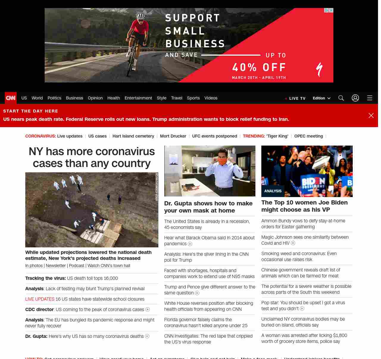 || screaming-banner-text banner-text-size–char-47″ data-analytics=”_list-hierarchical-xs_article_”> NY has more coronavirus cases than any country ||” , title: “CNN – Breaking News, Latest News and Videos” , siblings: {“articleList”:[{“uri”:”/2020/04/10/health/us-coronavirus-friday/index.html”,”headline”:”u003cstrong>While updated projections lowered the national death estimate, New York’s projected deaths increasedu003c/strong>”,”thumbnail”:”//cdn.cnn.com/cnnnext/dam/assets/200409184745-44-week-in-photos-0409-small-11.jpg”,”duration”:””,”description”:”u003ca href=”https://www.cnn.com/2020/03/19/world/gallery/novel-coronavirus-outbreak/index.html” target=”_blank”>In photos u003c/a>| u003ca href=”https://www.cnn.com/specials/coronavirus-newsletter?utm_source=hp&source=hp” target=”_blank”>Newsletteru003c/a> | u003ca href=”https://www.cnn.com/audio/podcasts/corona-virus”>Podcastu003c/a> | u003ca href=”https://www.cnn.com/videos/health/2020/04/09/entire-april-9-coronavirus-town-hall-part-1-sot-vpx.cnn” target=”_blank”>Watch CNN’s town hallu003c/a>”,”layout”:””
