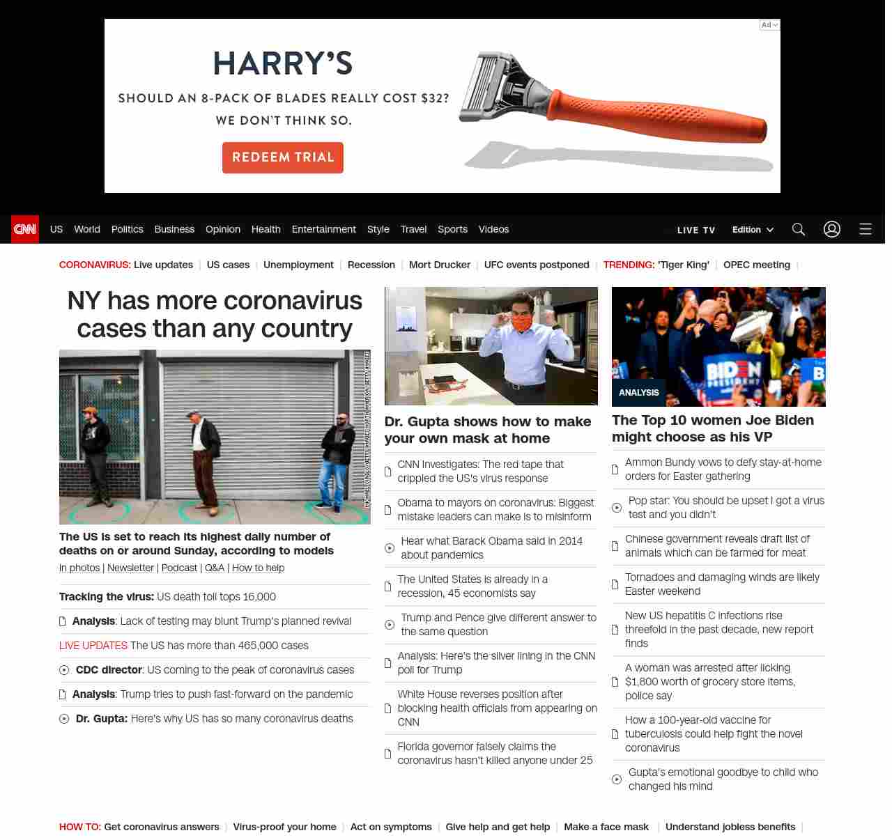 || screaming-banner-text banner-text-size–char-47″ data-analytics=”_list-hierarchical-xs_article_”> NY has more coronavirus cases than any country ||” , title: “CNN – Breaking News, Latest News and Videos” , siblings: {“articleList”:[{“uri”:”/2020/04/10/health/us-coronavirus-friday/index.html”,”headline”:”u003cstrong>While updated projections lowered the national death estimate, New York’s projected deaths increasedu003c/strong>”,”thumbnail”:”//cdn.cnn.com/cnnnext/dam/assets/200410000439-social-distancing-small-11.jpg”,”duration”:””,”description”:”u003ca href=”https://www.cnn.com/2020/03/19/world/gallery/novel-coronavirus-outbreak/index.html” target=”_blank”>In photos u003c/a>| u003ca href=”https://www.cnn.com/specials/coronavirus-newsletter?utm_source=hp&source=hp” target=”_blank”>Newsletteru003c/a> | u003ca href=”https://www.cnn.com/audio/podcasts/corona-virus”>Podcastu003c/a> | u003ca href=”https://www.cnn.com/interactive/2020/health/coronavirus-questions-answers/” target=”_blank”>Q&Au003c/a> | u003ca href=”https://www.cnn.com/interactive/2020/health/coronavirus-how-to-help/” target=”_blank”>How to helpu003c/a>”,”layout”:””