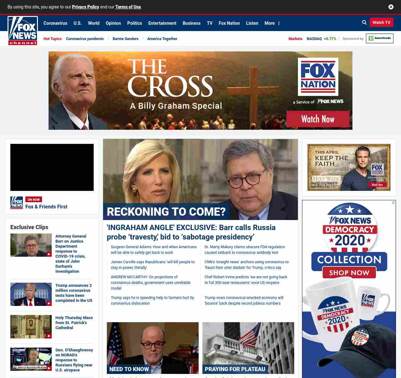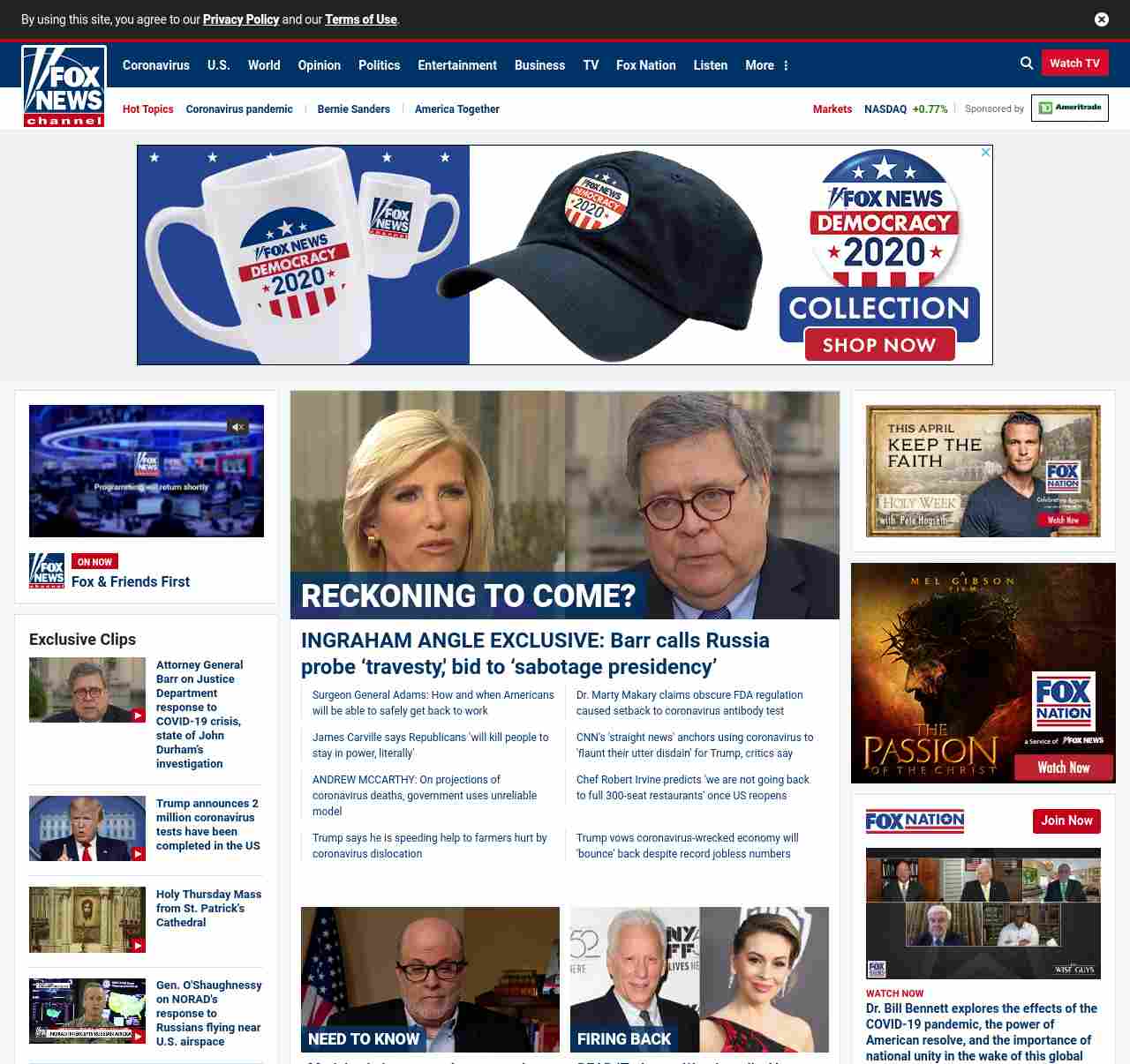 FN: [[RECKONING TO COME?]] INGRAHAM ANGLE EXCLUSIVE: Barr calls Russia probe ‘travesty,' bid to ‘sabotage presidency’ ((lubuntu at wor3))