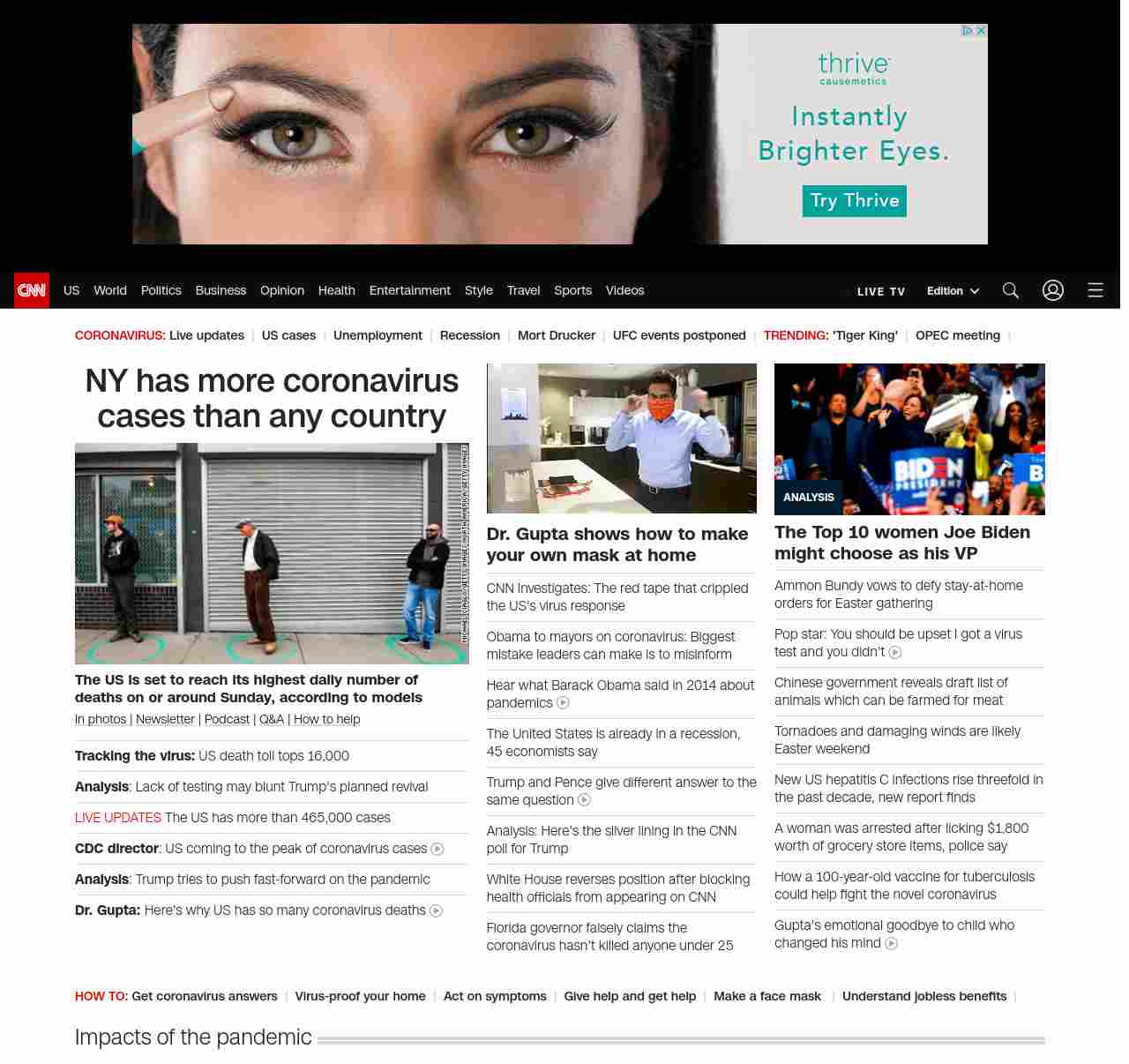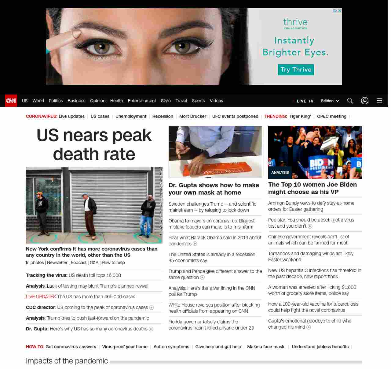 || screaming-banner-text banner-text-size–char-26″ data-analytics=”_list-hierarchical-xs_article_”> US nears peak death rate ||” , title: “CNN – Breaking News, Latest News and Videos” , siblings: {“articleList”:[{“uri”:”/2020/04/10/health/us-coronavirus-friday/index.html”,”headline”:”u003cstrong>The US is set to reach its highest daily number of deaths on or around Sunday, according to modelsu003c/strong>”,”thumbnail”:”//cdn.cnn.com/cnnnext/dam/assets/200410000439-social-distancing-small-11.jpg”,”duration”:””,”description”:”u003ca href=”https://www.cnn.com/2020/03/19/world/gallery/novel-coronavirus-outbreak/index.html” target=”_blank”>In photos u003c/a>| u003ca href=”https://www.cnn.com/specials/coronavirus-newsletter?utm_source=hp&source=hp” target=”_blank”>Newsletteru003c/a> | u003ca href=”https://www.cnn.com/audio/podcasts/corona-virus”>Podcastu003c/a> | u003ca href=”https://www.cnn.com/interactive/2020/health/coronavirus-questions-answers/” target=”_blank”>Q&Au003c/a> | u003ca href=”https://www.cnn.com/interactive/2020/health/coronavirus-how-to-help/” target=”_blank”>How to helpu003c/a>”,”layout”:””