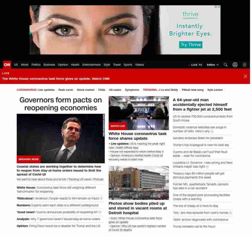 || screaming-banner-text banner-text-size–char-44″ data-analytics=”_list-hierarchical-xs_article_”> Governors form pacts on reopening economies ||” , title: “CNN – Breaking News, Latest News and Videos” , siblings: {“articleList”:[{“uri”:”/2020/04/13/politics/states-band-together-reopening-plans/index.html”,”headline”:”u003cstrong>Coastal states are working together to determine how to reopen from stay-at-home orders issued to limit the spread of Covid-19u003c/strong>”,”thumbnail”:”//cdn.cnn.com/cnnnext/dam/assets/200326170801-02-gavin-newsom-file-2019-small-11.jpg”,”duration”:””,”description”:”u003ca href=”https://www.cnn.com/2020/04/08/health/share-coronavirus-covid19-victims-memories/index.html” target=”_blank”>We want to hear about those you’ve lostu003c/a> | u003ca href=”https://www.cnn.com/interactive/2020/health/coronavirus-us-maps-and-cases/” target=”_blank”>Tracking US cases u003c/a>| u003ca href=”https://www.cnn.com/audio/podcasts/corona-virus”>Podcastu003c/a> | “,”layout”:””