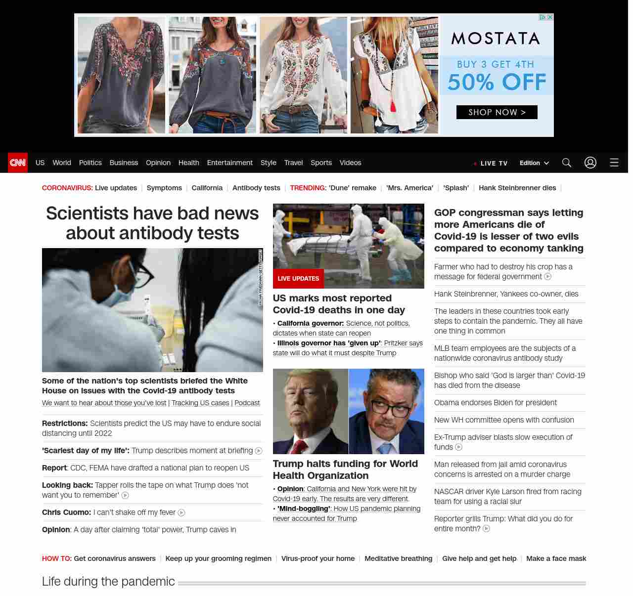 || screaming-banner-text banner-text-size–char-47″ data-analytics=”_list-hierarchical-xs_article_”> Scientists have bad news about antibody tests ||” , title: “CNN – Breaking News, Latest News and Videos” , siblings: {“articleList”:[{“uri”:”/2020/04/14/health/coronavirus-antibody-tests-scientists/index.html”,”headline”:”u003cstrong>Some of the nation’s top scientists briefed the White House on issues with the Covid-19 antibody testsu003c/strong>”,”thumbnail”:”//cdn.cnn.com/cnnnext/dam/assets/200414165300-coronavirus-antibody-test-0410-small-11.jpg”,”duration”:””,”description”:”u003ca href=”https://www.cnn.com/2020/04/08/health/share-coronavirus-covid19-victims-memories/index.html” target=”_blank”>We want to hear about those you’ve lostu003c/a> | u003ca href=”https://www.cnn.com/interactive/2020/health/coronavirus-us-maps-and-cases/” target=”_blank”>Tracking US cases u003c/a>| u003ca href=”https://www.cnn.com/audio/podcasts/corona-virus”>Podcastu003c/a>”,”layout”:””