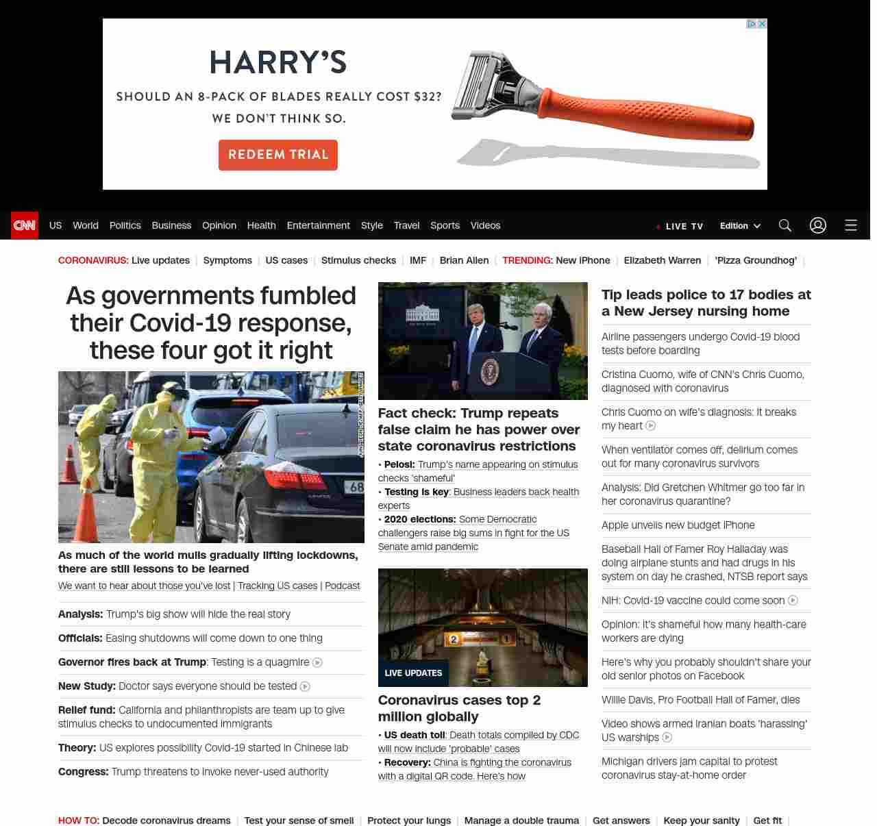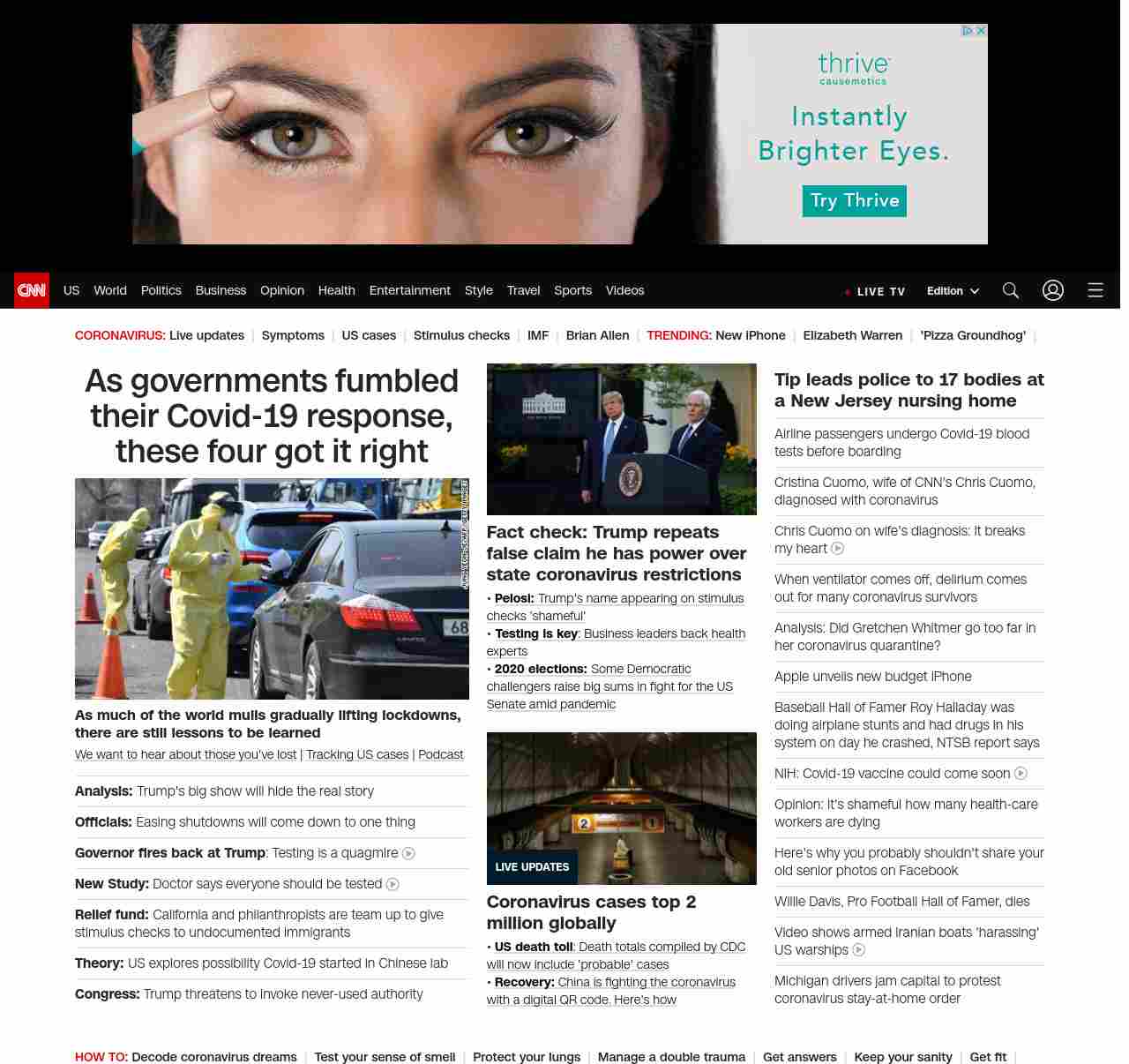 || screaming-banner-text banner-text-size–char-47″ data-analytics=”_list-hierarchical-xs_article_”> As governments fumbled their Covid-19 response, these four got it right ||” , title: “CNN – Breaking News, Latest News and Videos” , siblings: {“articleList”:[{“uri”:”/2020/04/16/world/coronavirus-response-lessons-learned-intl/index.html”,”headline”:”u003cstrong>As much of the world mulls gradually lifting lockdowns, there are still lessons to be learned u003c/strong>”,”thumbnail”:”//cdn.cnn.com/cnnnext/dam/assets/200414152539-05-coronavirus-lessons-south-korea-small-11.jpg”,”duration”:””,”description”:”u003ca href=”https://www.cnn.com/2020/04/08/health/share-coronavirus-covid19-victims-memories/index.html” target=”_blank”>We want to hear about those you’ve lostu003c/a> | u003ca href=”https://www.cnn.com/interactive/2020/health/coronavirus-us-maps-and-cases/” target=”_blank”>Tracking US casesu003c/a> | u003ca href=”https://www.cnn.com/audio/podcasts/corona-virus” target=”_blank”>Podcastu003c/a>”,”layout”:””