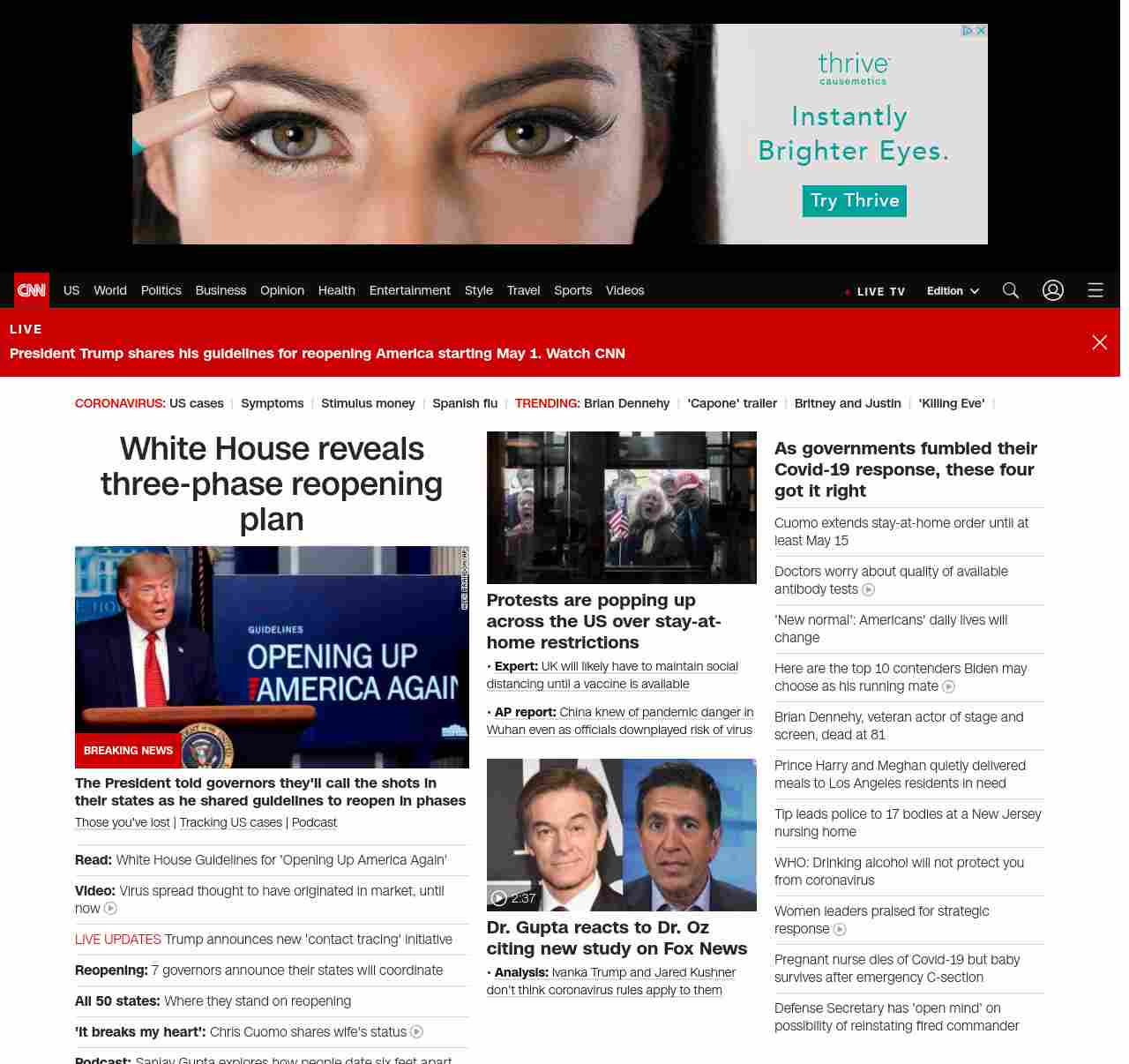 || screaming-banner-text banner-text-size–char-47″ data-analytics=”_list-hierarchical-xs_article_”> White House reveals three-phase reopening plan ||=”banner-text screaming-banner-text banner-text-size–char-47″ data-analytics=”_list-hierarchical-xs_article_”>White House gives guidelines on reopening economy