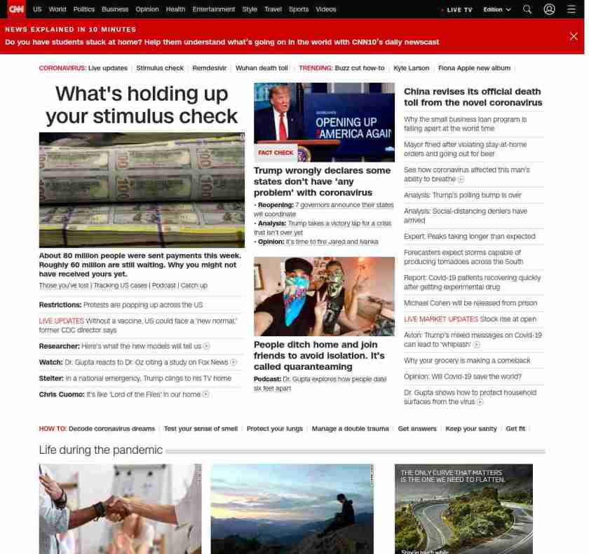|| screaming-banner-text banner-text-size–char-38″ data-analytics=”_list-hierarchical-xs_article_”> What’s holding up your stimulus check ||” , title: “CNN – Breaking News, Latest News and Videos” , siblings: {“articleList”:[{“uri”:”/2020/04/16/politics/why-didnt-i-get-my-stimulus-money/index.html”,”headline”:”u003cstrong>About 80 million people were sent payments this week. Roughly 60 million are still waiting. Why you might not have received yours yet.u003c/strong>”,”thumbnail”:”//cdn.cnn.com/cnnnext/dam/assets/200409164525-money-b-roll-briefing-04092020-small-11.jpg”,”duration”:””,”description”:”u003ca href=”https://www.cnn.com/2020/04/08/health/share-coronavirus-covid19-victims-memories/index.html” target=”_blank”>Those you’ve lost u003c/a>| u003ca href=”https://www.cnn.com/interactive/2020/health/coronavirus-us-maps-and-cases/” target=”_blank”>Tracking US casesu003c/a> | u003ca href=”https://www.cnn.com/audio/podcasts/corona-virus” target=”_blank”>Podcastu003c/a> | u003ca href=”https://www.cnn.com/2020/04/17/world/coronavirus-newsletter-04-17-20-intl/index.html” target=”_blank”>Catch up u003c/a>”,”layout”:””