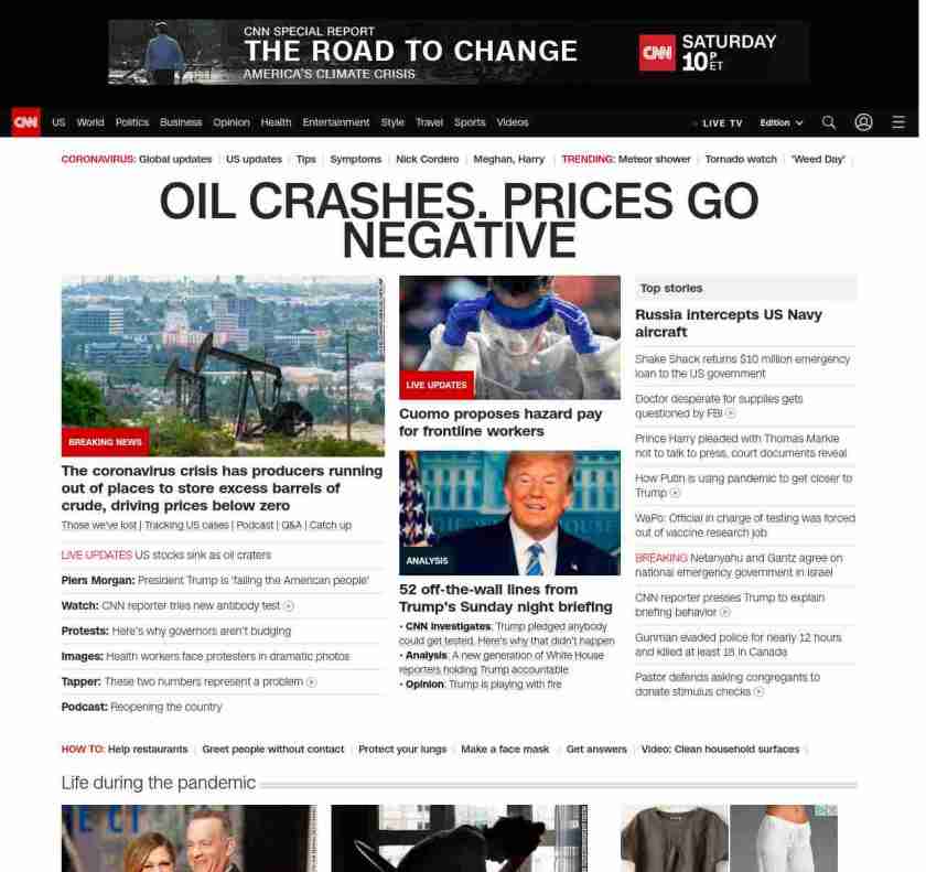 || banner-text–maximized banner-text-size–char-35-uc”> OIL CRASHES. PRICE GOES NEGATIVE ||” , title: “CNN – Breaking News, Latest News and Videos” , siblings: {“articleList”:[{“uri”:”/2020/04/20/investing/premarket-stocks-trading/index.html”,”headline”:”u003cstrong>The coronavirus crisis has producers running out of places to store excess barrels of crude, driving prices below zerou003c/strong>”,”thumbnail”:”//cdn.cnn.com/cnnnext/dam/assets/200420114847-oil-pump-jacks-crude-usa-0309-small-11.jpg”,”duration”:””,”description”:”u003ca href=”https://www.cnn.com/interactive/2020/health/coronavirus-victims-memories/” target=”_blank”>Those we’ve lost u003c/a>| u003ca href=”https://www.cnn.com/interactive/2020/health/coronavirus-us-maps-and-cases/” target=”_blank”>Tracking US casesu003c/a> | u003ca href=”https://www.cnn.com/audio/podcasts/corona-virus” target=”_blank”>Podcastu003c/a> | u003ca href=”https://www.cnn.com/interactive/2020/health/coronavirus-questions-answers/” target=”_blank”>Q&Au003c/a> | u003ca href=”https://www.cnn.com/2020/04/19/world/coronavirus-newsletter-04-19-20/index.html” target=”_blank”>Catch upu003c/a>”,”layout”:””