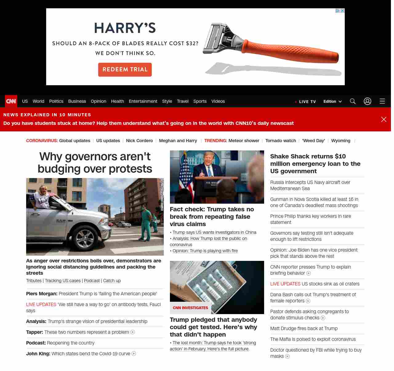 || screaming-banner-text banner-text-size–char-44″ data-analytics=”_list-hierarchical-xs_article_”> Why governors aren’t budging over protests ||” , title: “CNN – Breaking News, Latest News and Videos” , siblings: {“articleList”:[{“uri”:”/2020/04/20/us/protests-coronavirus-stay-at-home-orders/index.html”,”headline”:”u003cstrong>As anger over restrictions boils over, demonstrators are ignoring social distancing guidelines and packing the streetsu003c/strong>”,”thumbnail”:”//cdn.cnn.com/cnnnext/dam/assets/200420070803-denver-coronavirus-protest-0419-restricted-small-11.jpg”,”duration”:””,”description”:”u003ca href=”https://www.cnn.com/interactive/2020/health/coronavirus-victims-memories/” target=”_blank”>Tributesu003c/a> | u003ca href=”https://www.cnn.com/interactive/2020/health/coronavirus-us-maps-and-cases/” target=”_blank”>Tracking US casesu003c/a> | u003ca href=”https://www.cnn.com/audio/podcasts/corona-virus” target=”_blank”>Podcastu003c/a> | u003ca href=”https://www.cnn.com/2020/04/19/world/coronavirus-newsletter-04-19-20/index.html” target=”_blank”>Catch up u003c/a>”,”layout”:””