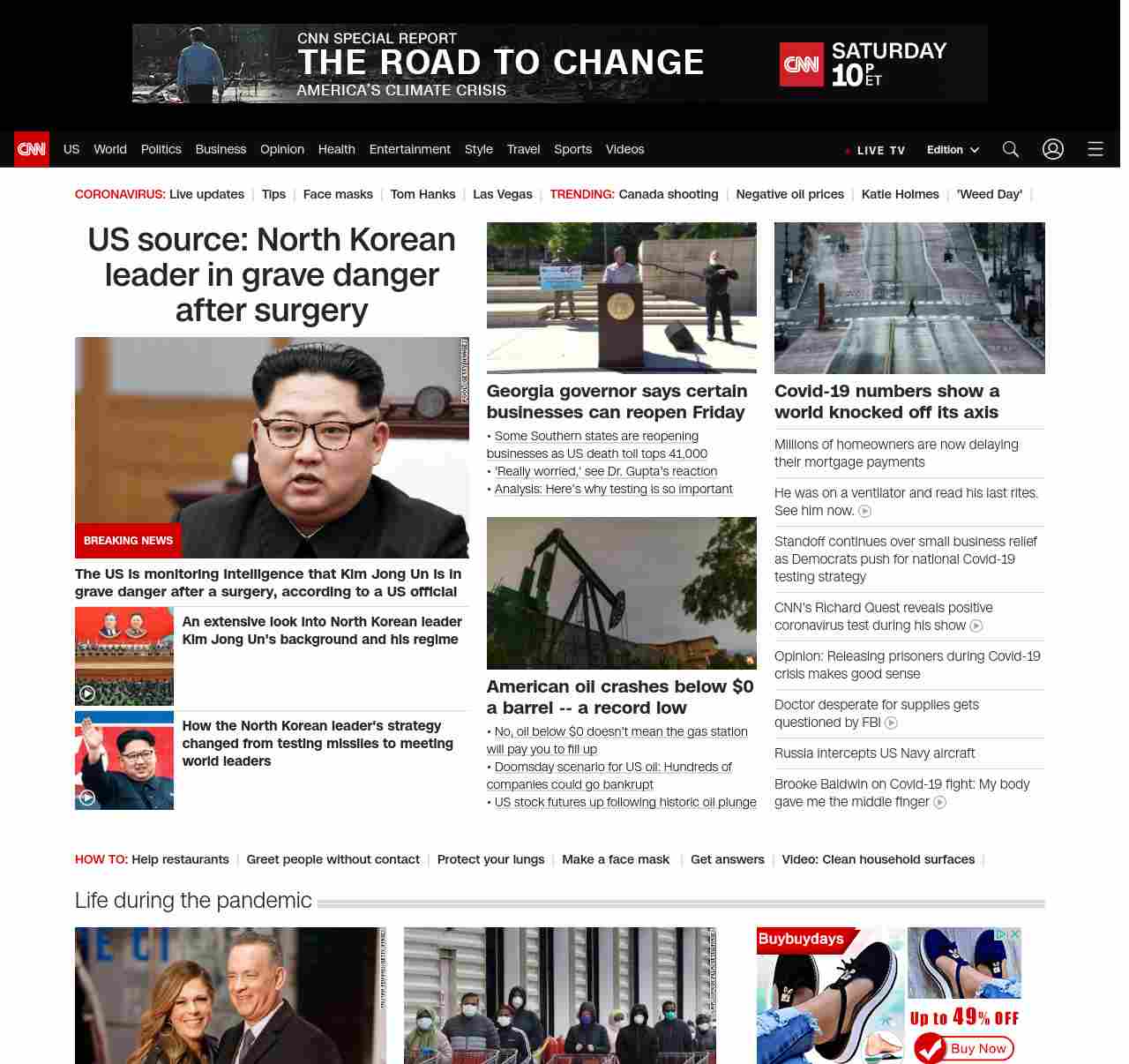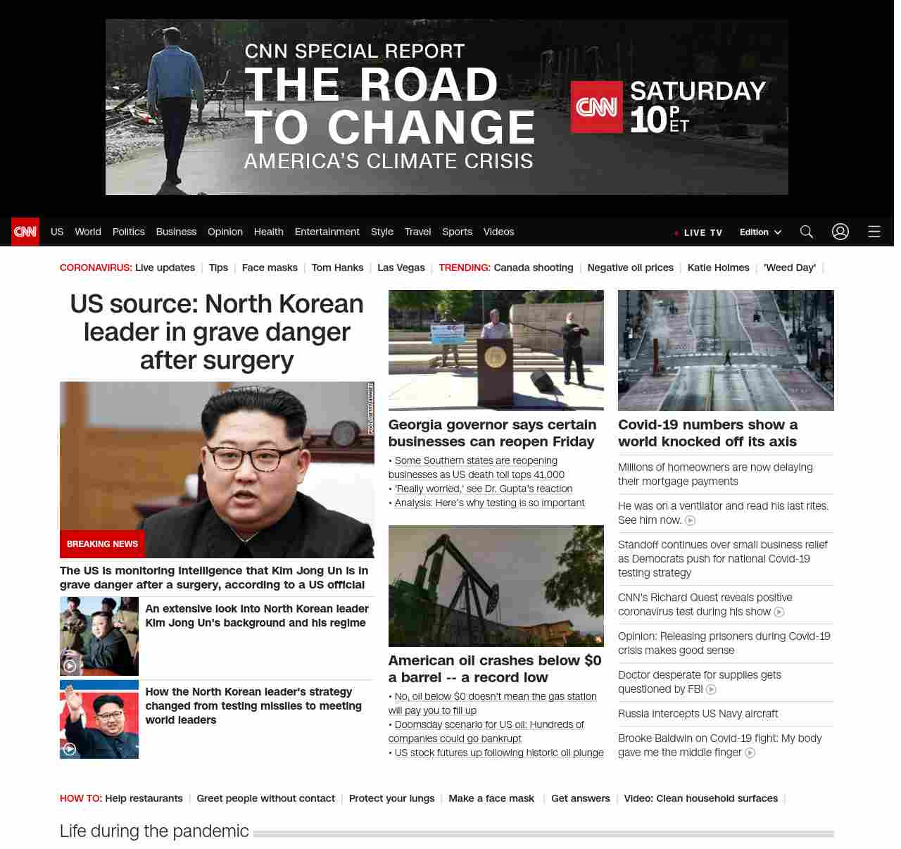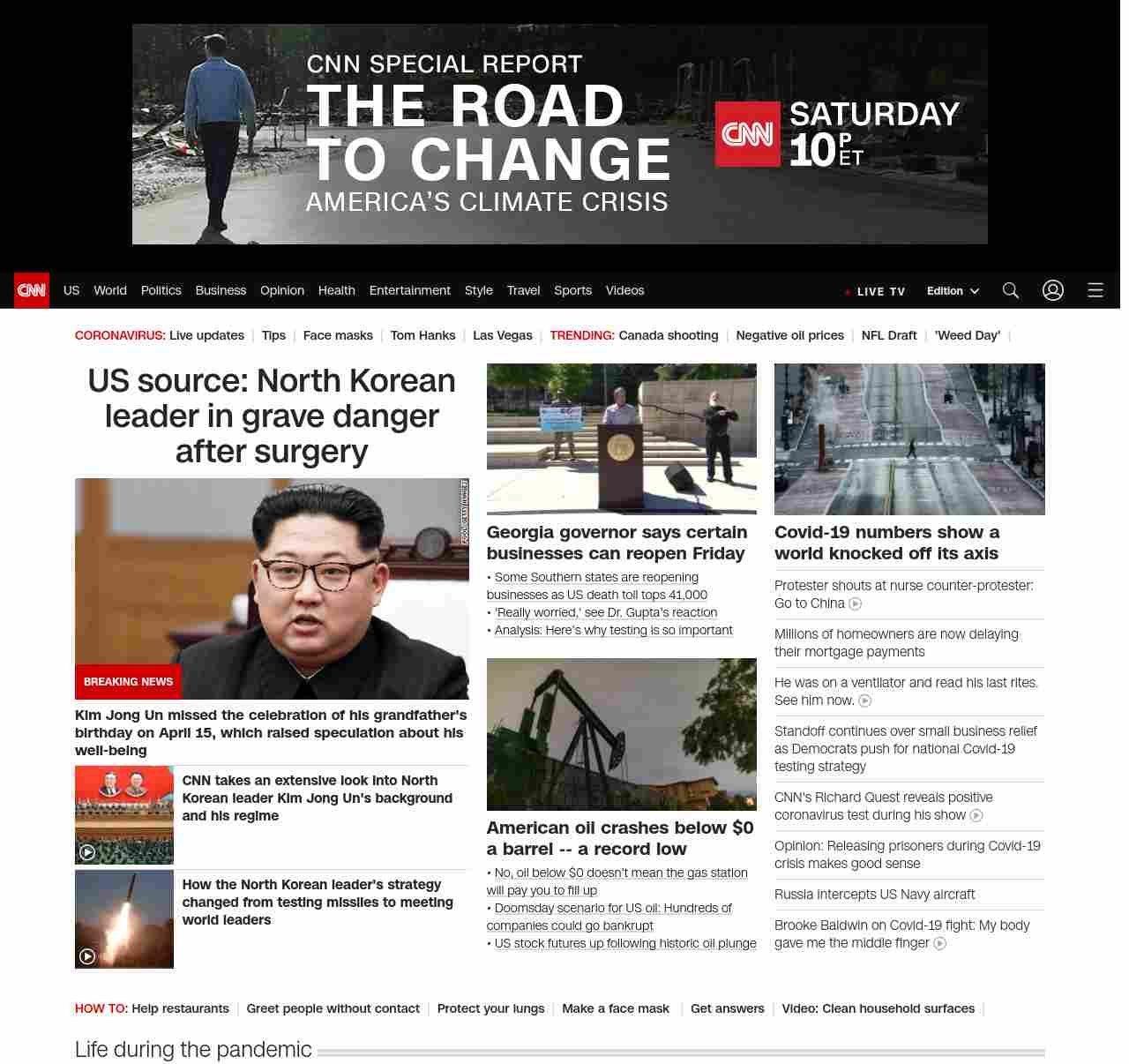 || screaming-banner-text banner-text-size–char-47″ data-analytics=”_list-hierarchical-small-horizontal_article_”> US source: North Korean leader in grave danger after surgery ||” , title: “CNN – Breaking News, Latest News and Videos” , siblings: {“articleList”:[{“uri”:”/2020/04/20/politics/kim-jong-un-north-korea/index.html”,”headline”:”u003cstrong>The US is monitoring intelligence that Kim Jong Un is in grave danger after a surgery, according to a US official u003c/strong>”,”thumbnail”:”//cdn.cnn.com/cnnnext/dam/assets/200308195832-02-kim-jong-un-file-small-11.jpg”,”duration”:””,”description”:”The US is monitoring intelligence that North Korea’s leader,u003ca href=”https://www.cnn.com/2012/12/26/world/asia/kim-jong-un—fast-facts/index.html” target=”_blank”> Kim Jong Unu003c/a>, is in grave danger after a surgery, according to US official with direct knowledge.”,”layout”:””