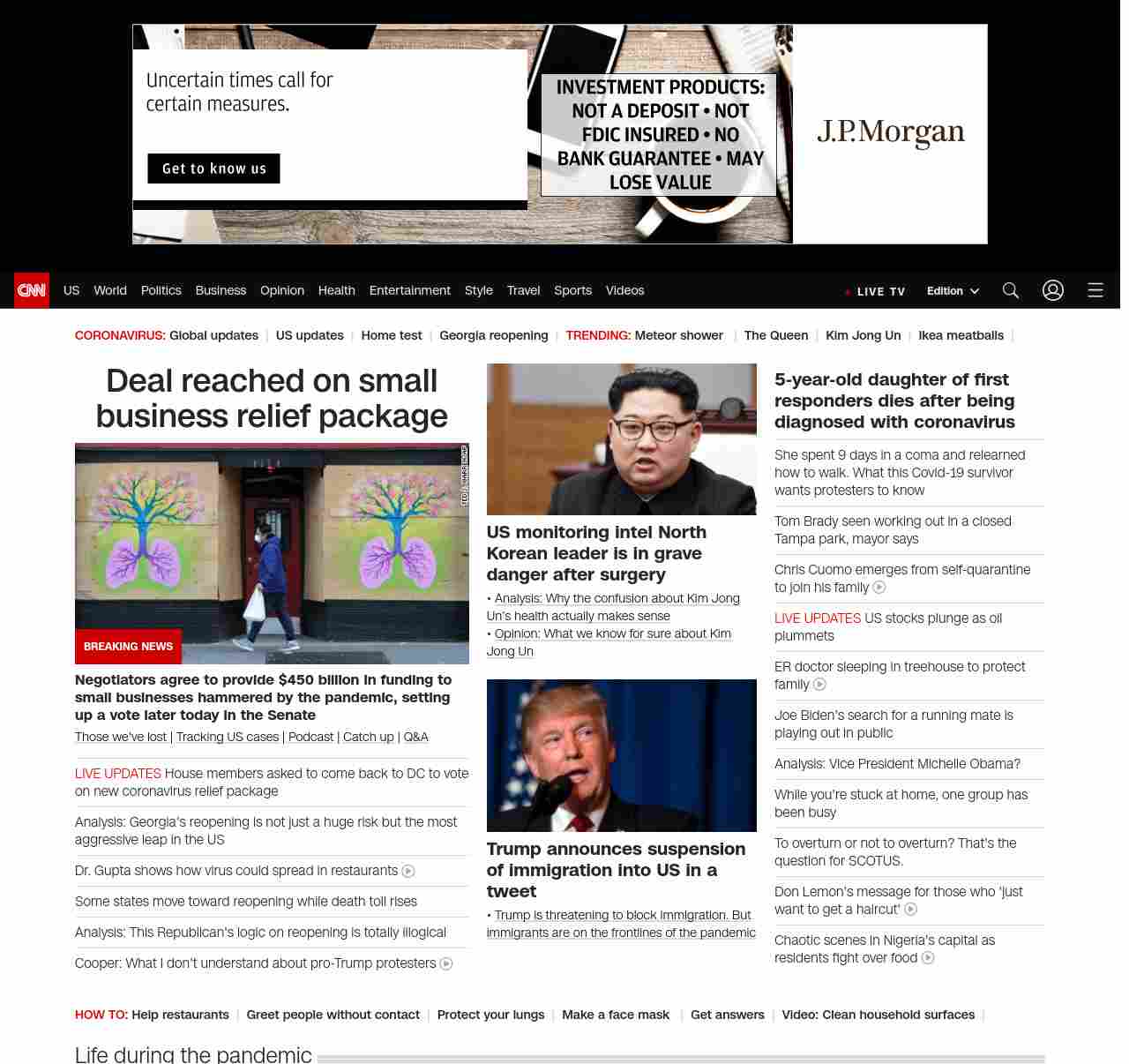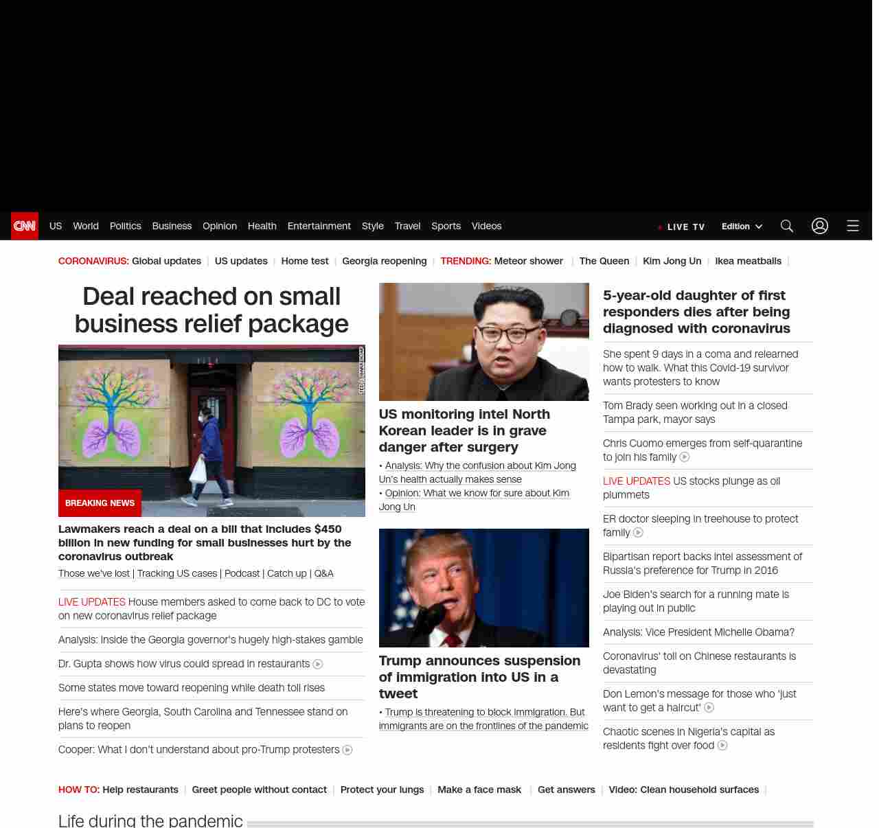 || screaming-banner-text banner-text-size–char-47″ data-analytics=”_list-hierarchical-xs_article_”> Deal reached on small business relief package ||” , title: “CNN – Breaking News, Latest News and Videos” , siblings: {“articleList”:[{“uri”:”/2020/04/21/politics/chuck-schumer-coronavirus-relief-small-business-cnntv/index.html”,”headline”:”u003cstrong>Negotiators agree to provide $450 billion in funding to small businesses hammered by the pandemic, setting up a vote later today in the Senateu003c/strong>”,”thumbnail”:”//cdn.cnn.com/cnnnext/dam/assets/200103132119-01-chuck-schumer-capitol-1203-small-11.jpg”,”duration”:””,”description”:”u003ca href=”https://www.cnn.com/interactive/2020/health/coronavirus-victims-memories/” target=”_blank”>Those we’ve lost u003c/a>| u003ca href=”https://www.cnn.com/interactive/2020/health/coronavirus-us-maps-and-cases/” target=”_blank”>Tracking US casesu003c/a> | u003ca href=”https://www.cnn.com/audio/podcasts/corona-virus” target=”_blank”>Podcastu003c/a> | u003ca href=”https://www.cnn.com/2020/04/20/world/coronavirus-newsletter-04-20-20-intl/index.html” target=”_blank”>Catch upu003c/a> | u003ca href=”http://cnn.com/CoronavirusAnswers” target=”_blank”>Q&Au003c/a>”,”layout”:””
